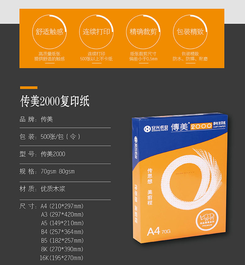安興紙業 傳美2000 A4 70g 80g 雙面打印 傳真紙 復印紙批發 復印紙 A4復印紙