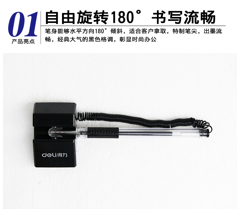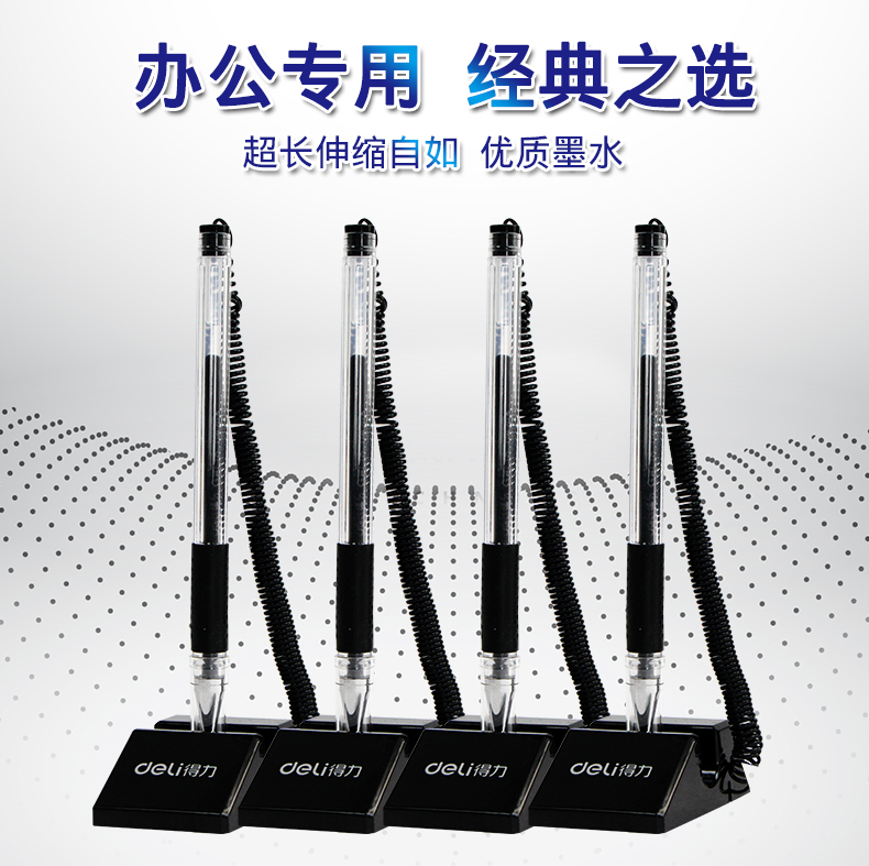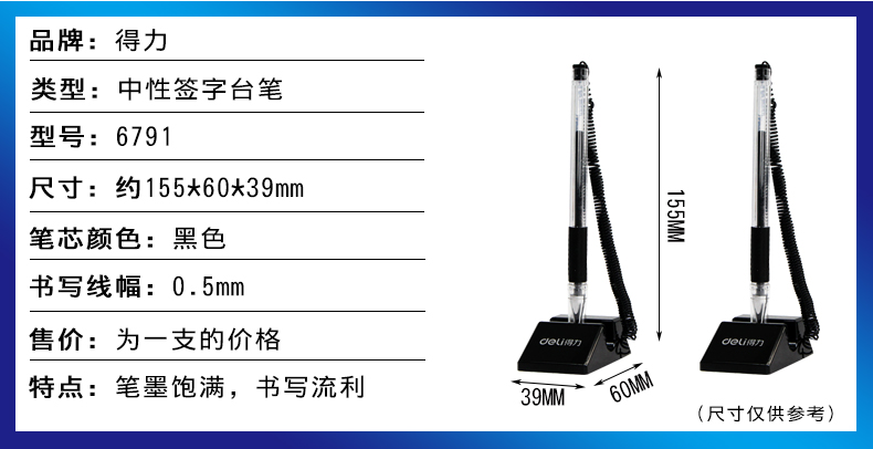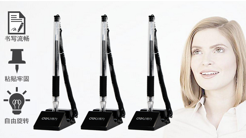 得力 6791 臺筆 商務辦公中性黑色簽字筆固定臺式銀行使用0.5mm 得力臺筆