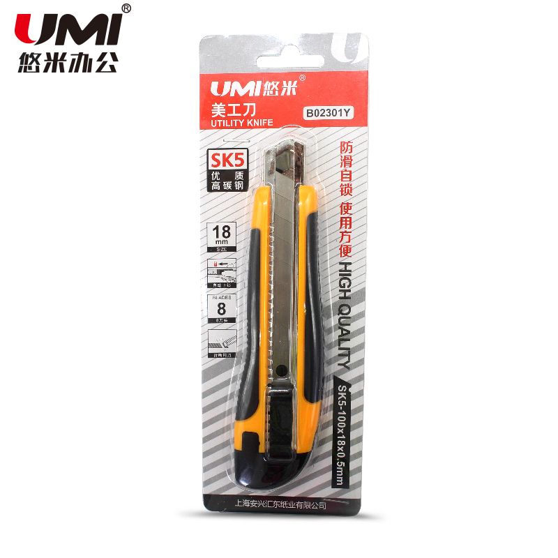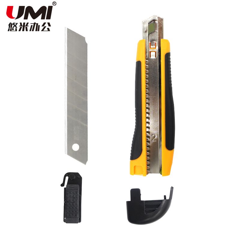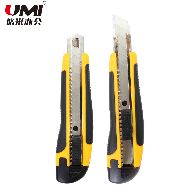 悠米橡膠防滑美工刀 大號B02301Y塑料美工刀裁紙刀 辦公文具批發