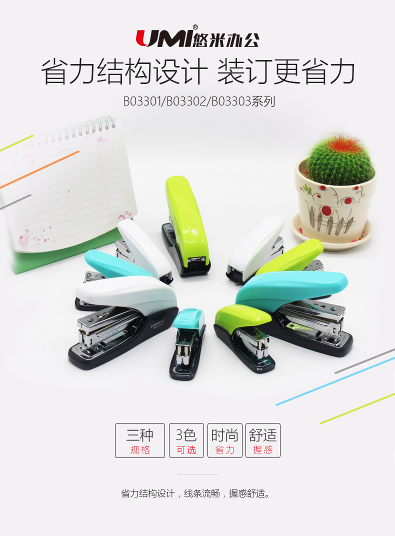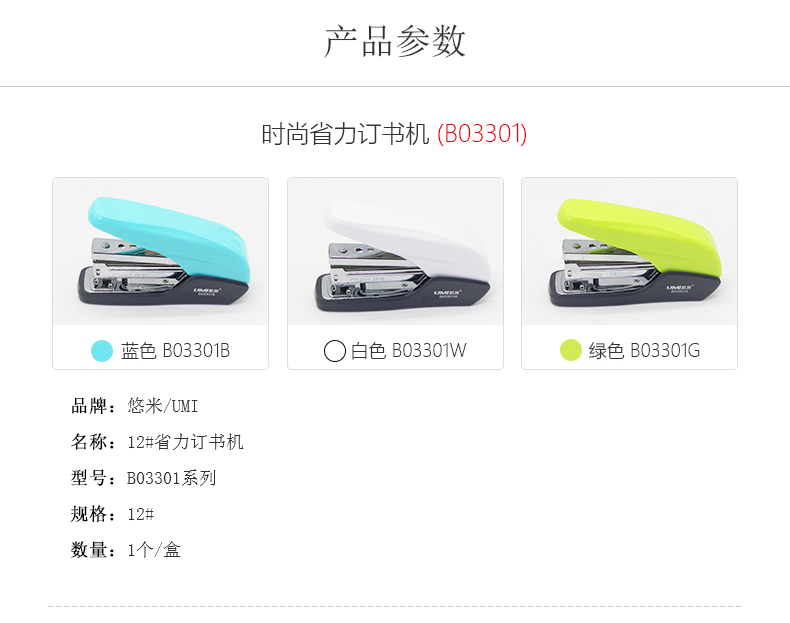 悠米時尚省力訂書機 12#加厚訂書器厚層大號裝訂文具定書機3301