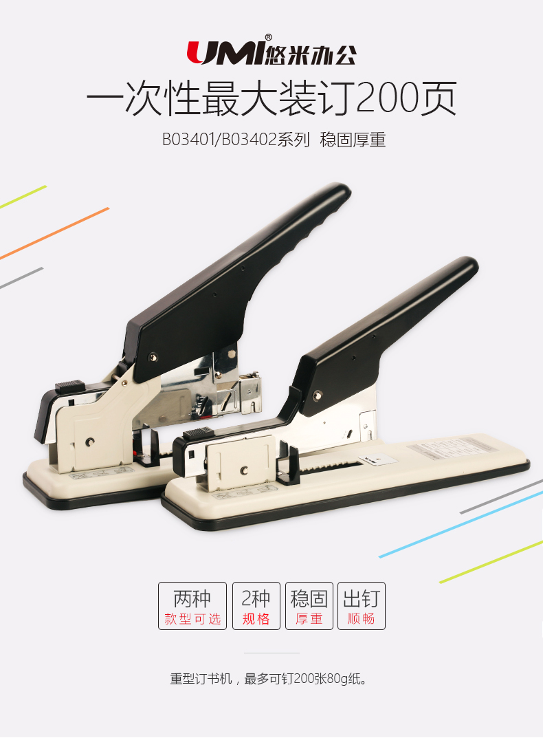 供應(yīng)悠米重型厚層訂書機 2-200頁加厚訂書器 大號裝訂文具 3402