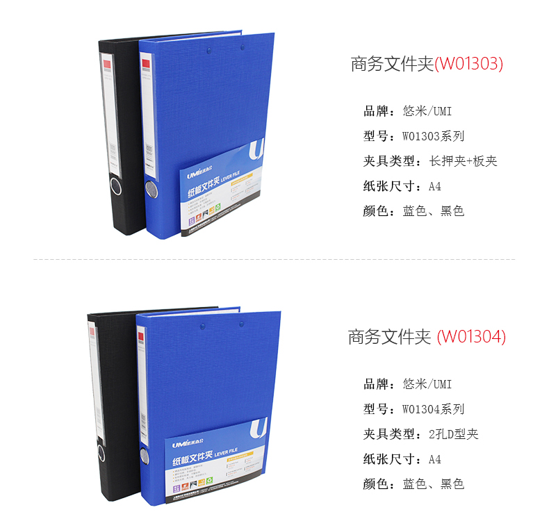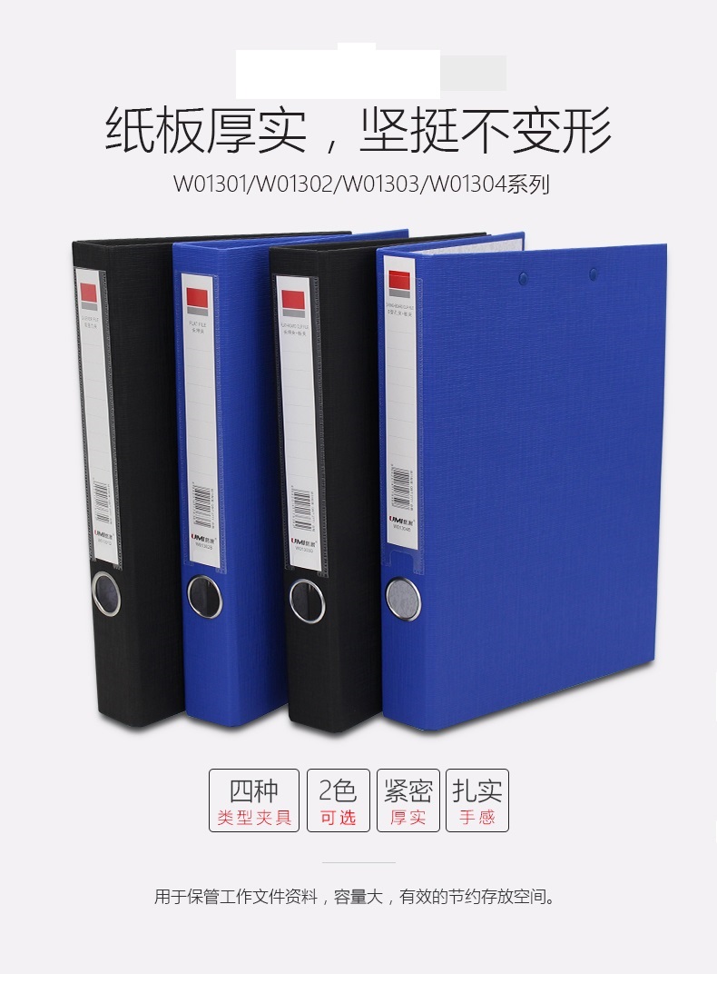 悠米 紙板文件夾 雙強力夾 打孔文件夾 辦公資料整理文件夾 W01301B 加厚文件夾