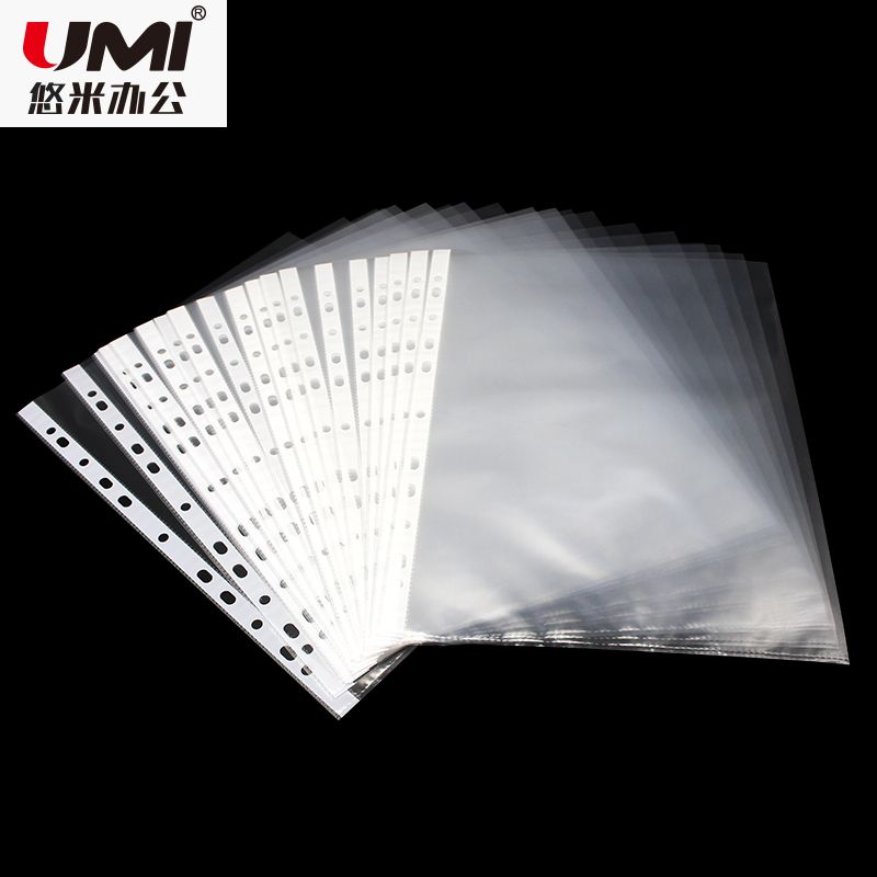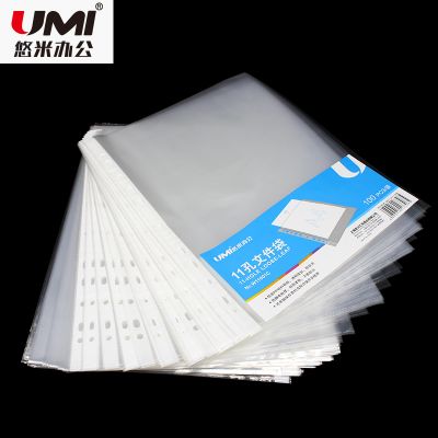 悠米 11孔資料保護備用袋 A4 透明文件套 100個/包 11孔文件袋 資料袋 文件保護袋