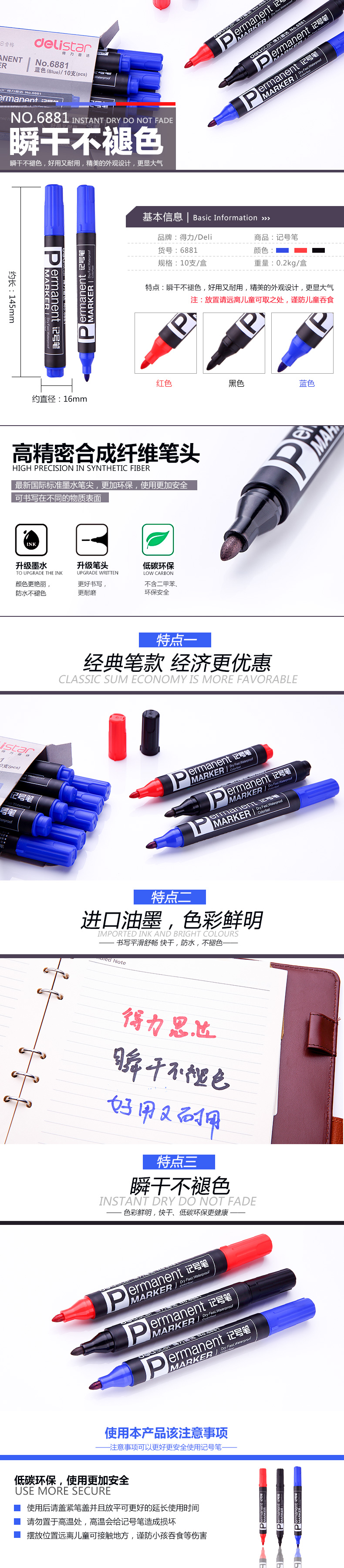 得力思達(dá) 6881 記號筆 黑色記號筆 黑色大頭筆 藍(lán)色記號筆 6881記號筆 得力記號筆