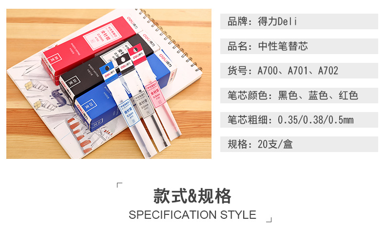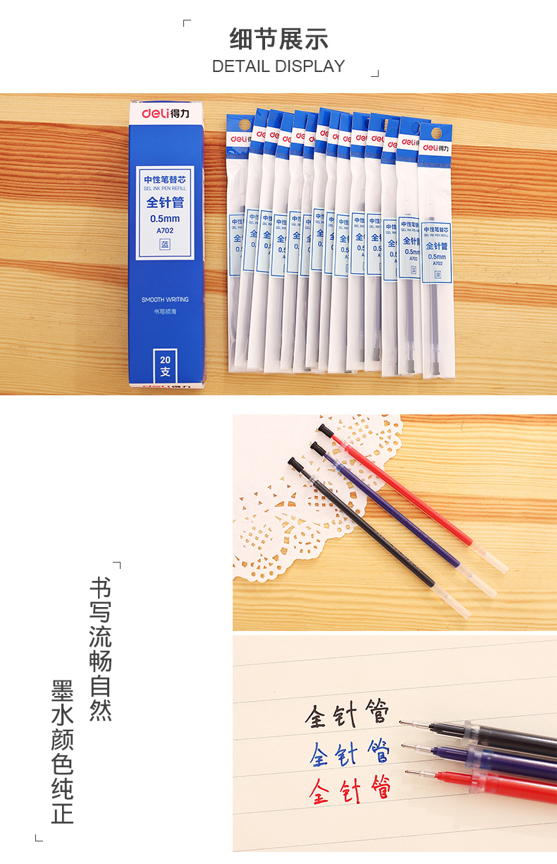 得力 deli A701中性筆芯0.38mm子彈頭 水筆芯 中性筆芯 黑色水筆芯 開學