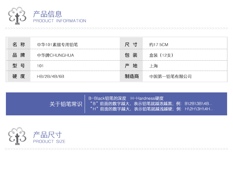 中華牌鉛筆 2h鉛筆 hb鉛筆 2b鉛筆 4B鉛筆 6B鉛筆 中華牌繪圖鉛筆 HB2H2B3B4B5B6B8B 4B