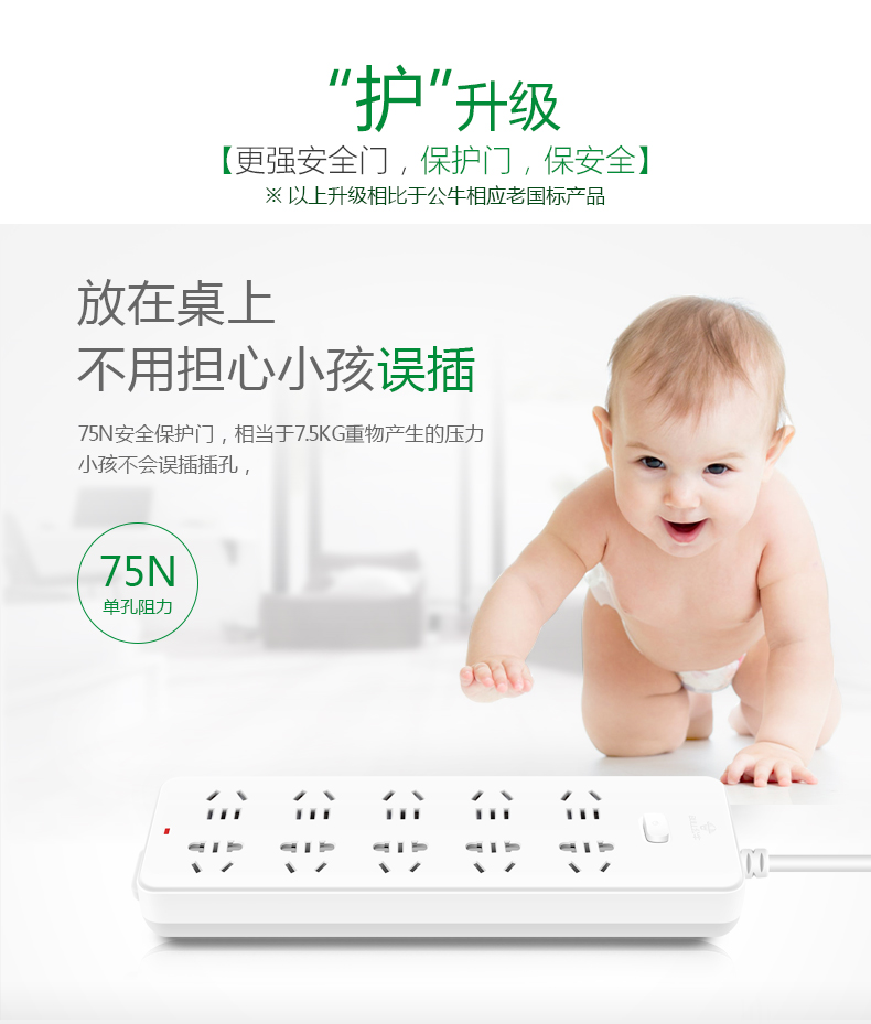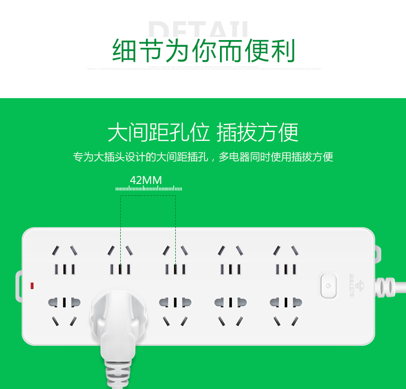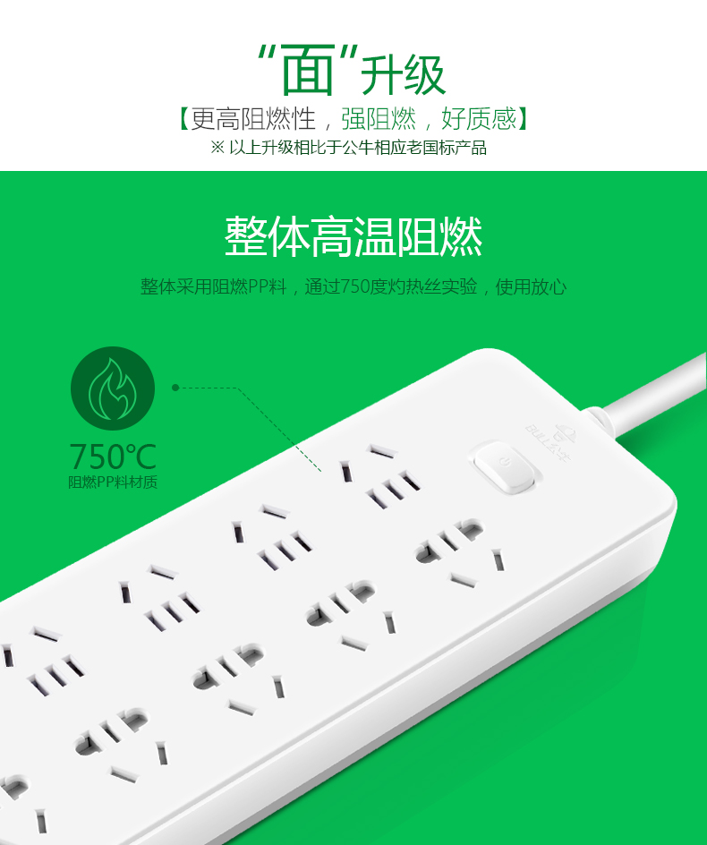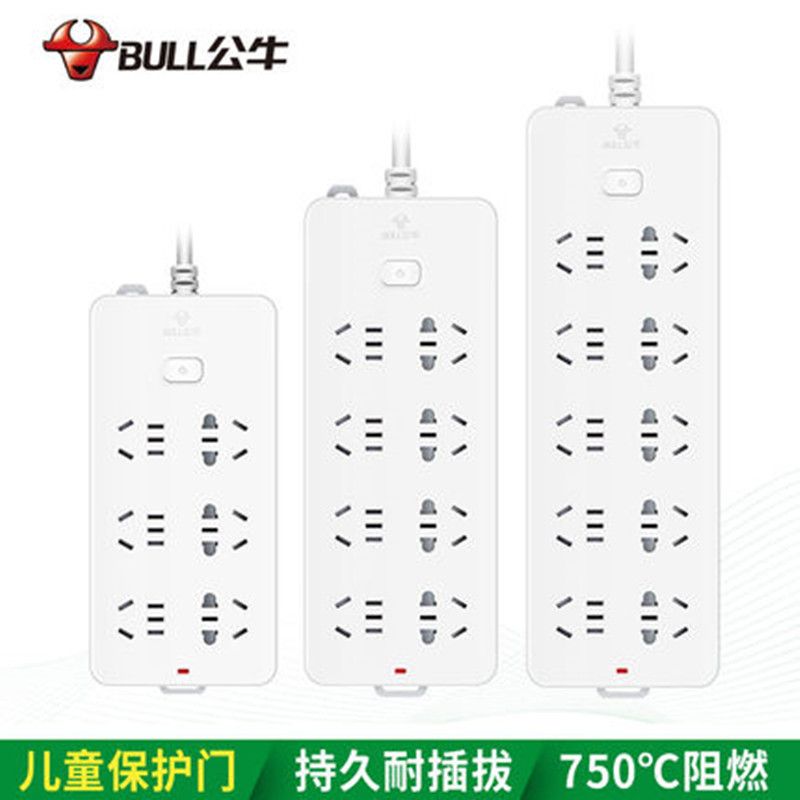 公牛(BULL) 插座/插線板/插排/排插/接線板/拖線板 公牛拖線板 公牛插座 10插位6孔3米5/10米GN-218/GN-217