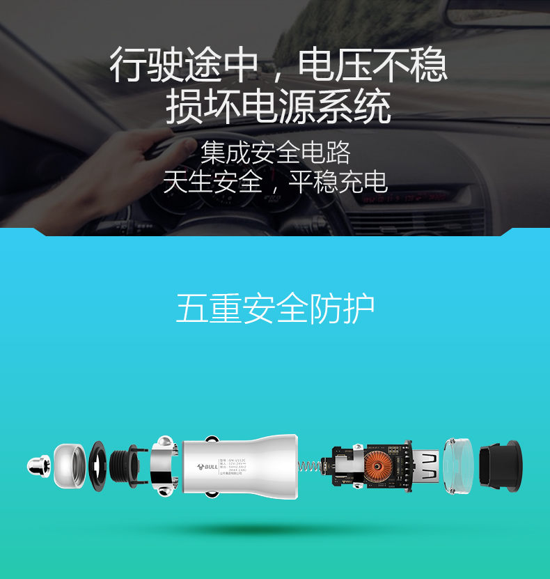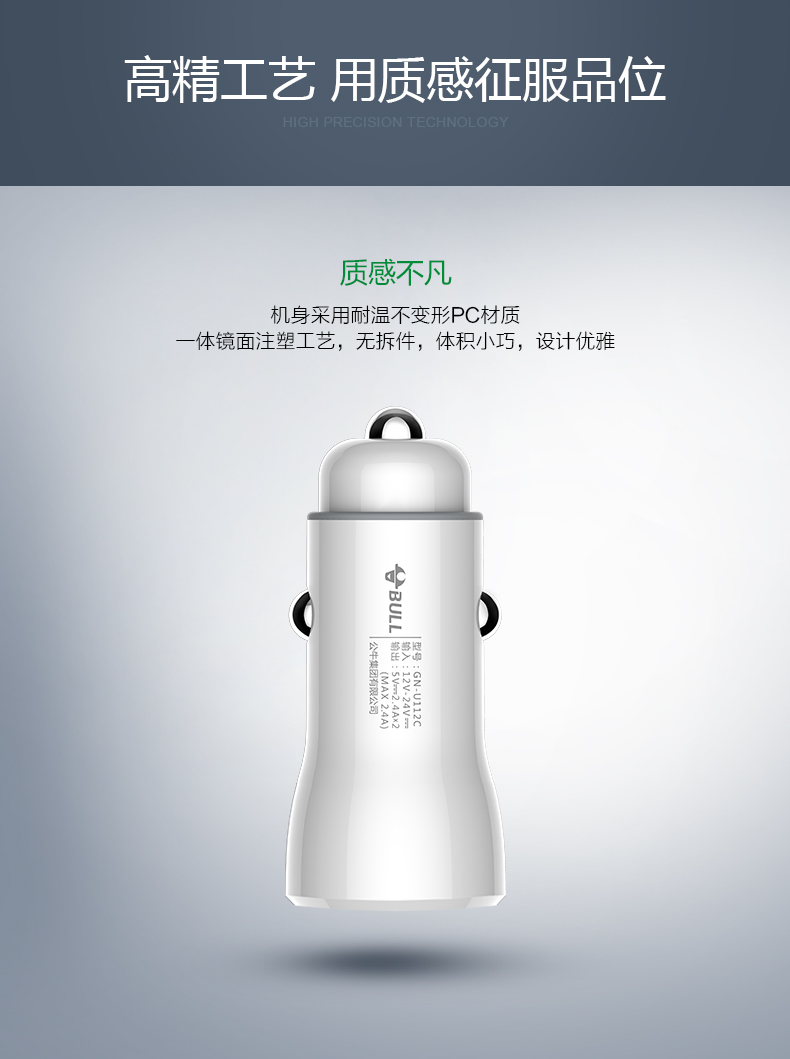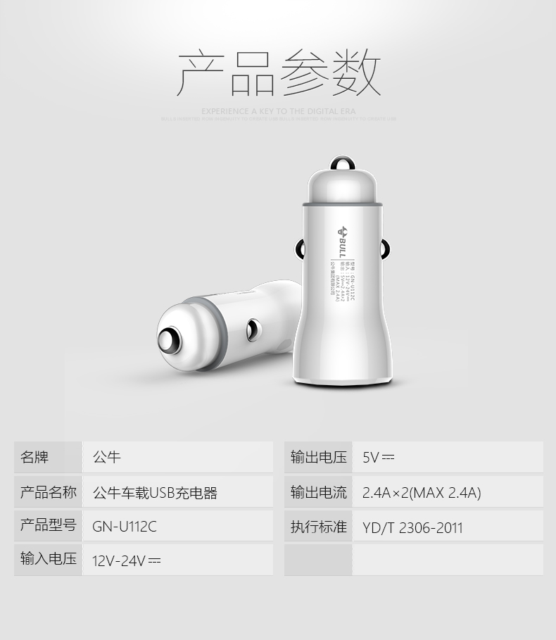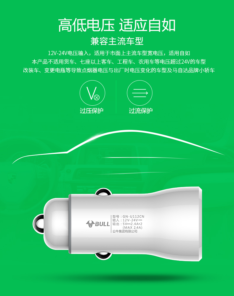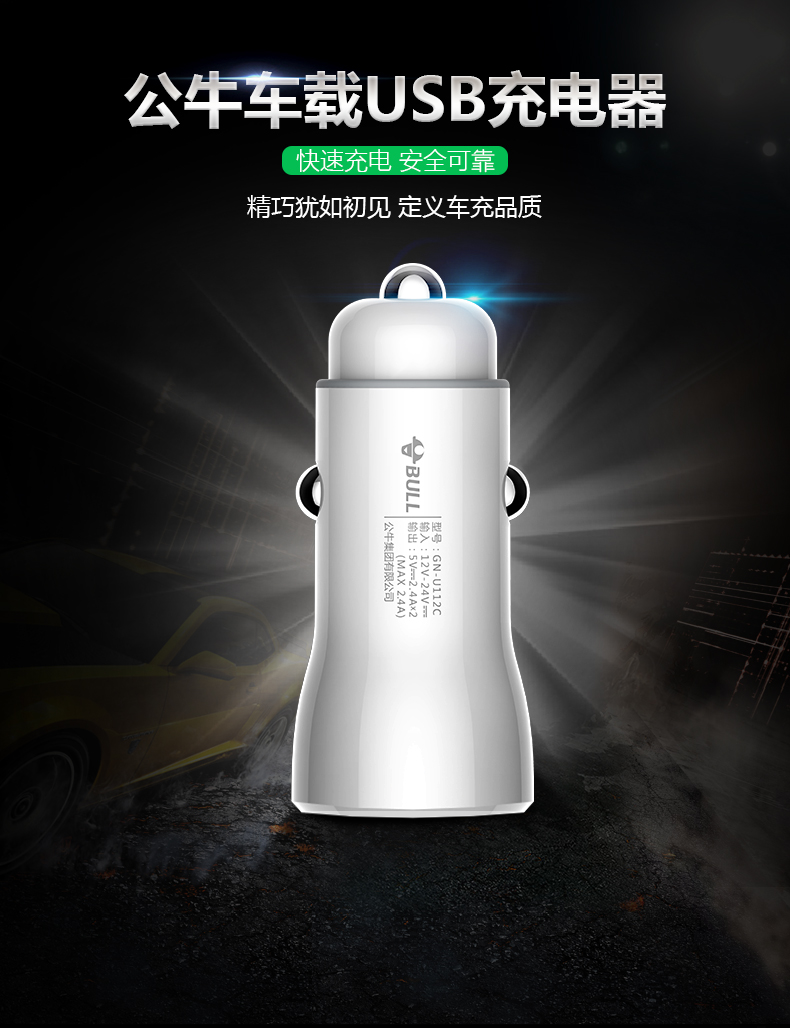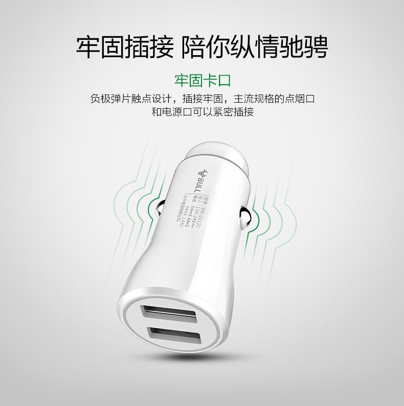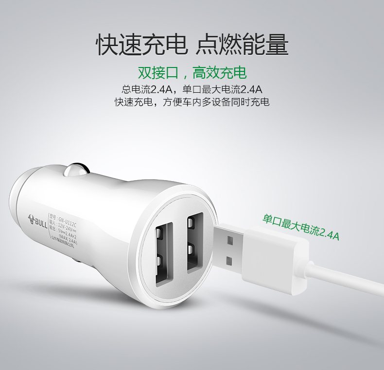 公牛車載充電器5V 雙USB手機平板通用車充多功能汽車一拖二 GN-U112CN公牛車載USB充電器