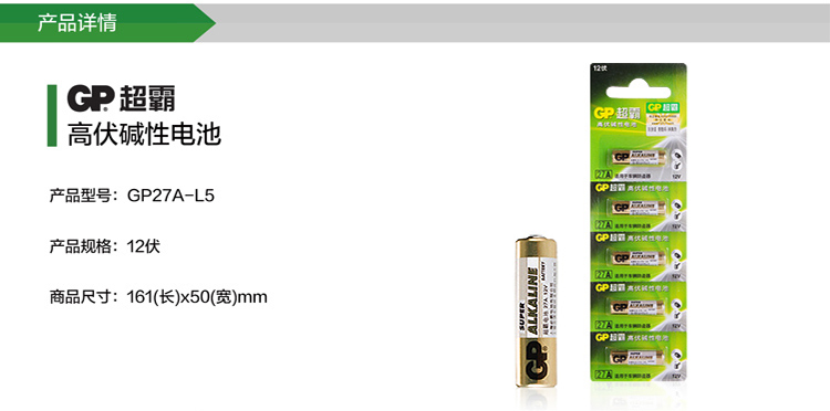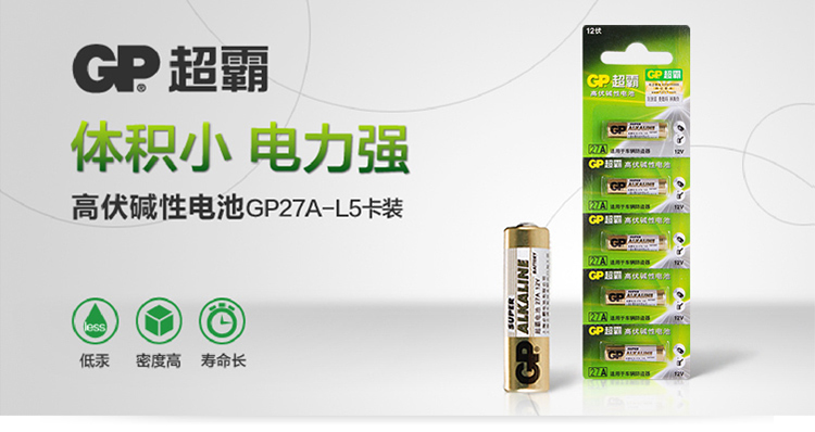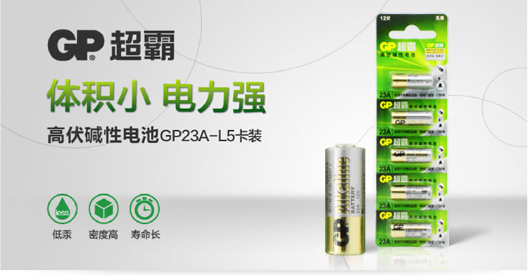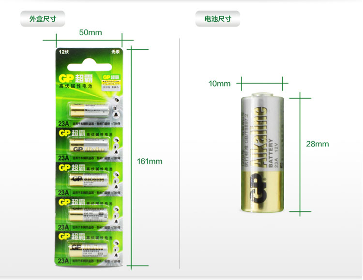 超霸(GP) 23A 27A 12V電池堿性12伏卷簾門鈴吊燈遙控器電動車防盜器小號電池L1028 2粒