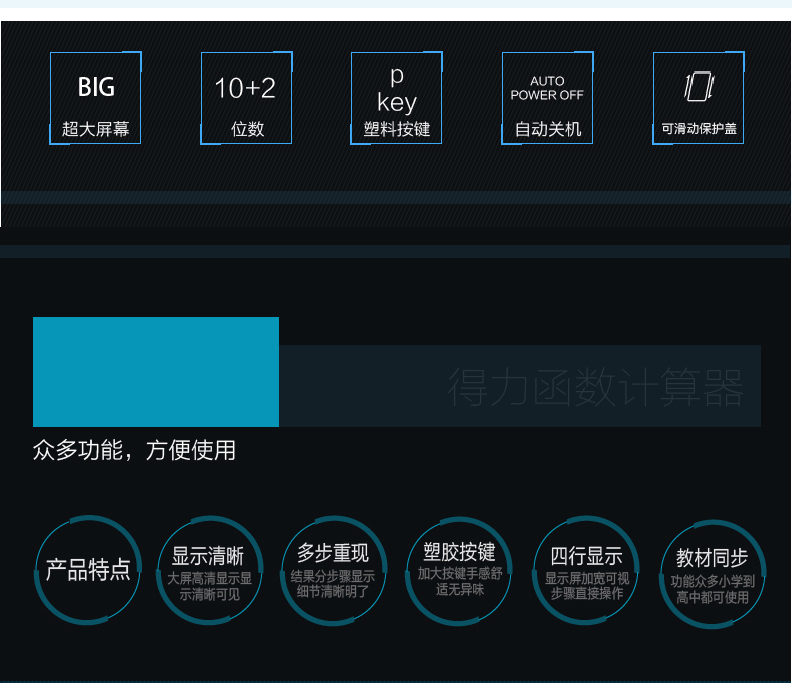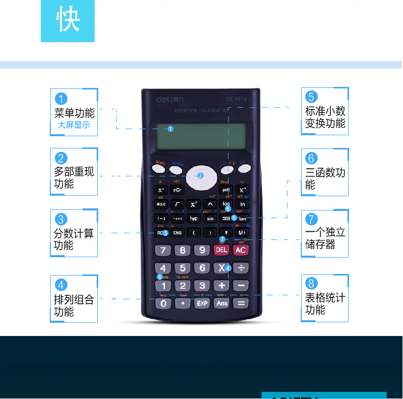 得力(deli)1710 大屏幕雙行顯示滑動保護蓋設計函數型計算器 得力1710計算器 計算機