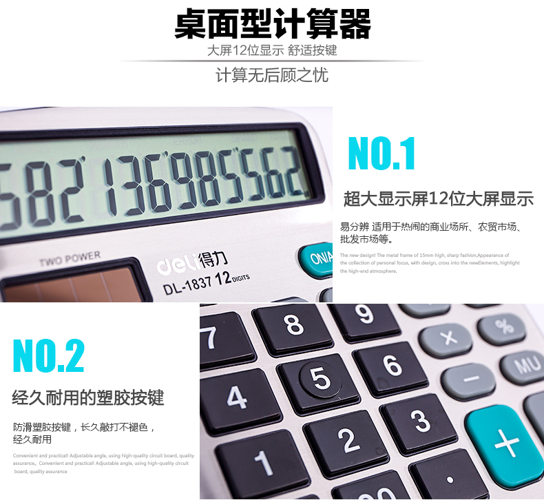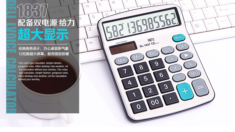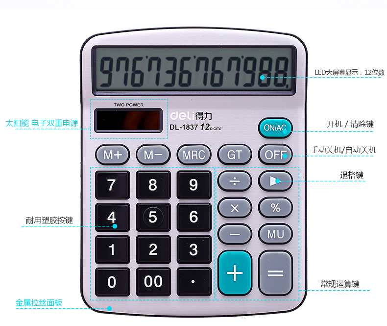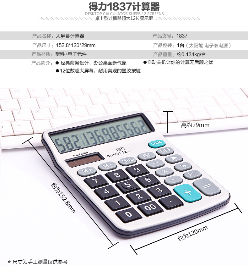 得力(deli)1837 金屬面板桌上型計算器 152.8*120*29mm 得力計算器 得力計算機