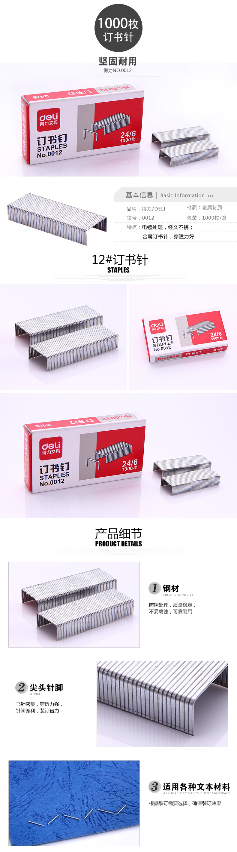 得力0012訂書釘24/6通用型訂書針12號釘書針辦公文具用品 得力0012訂書針