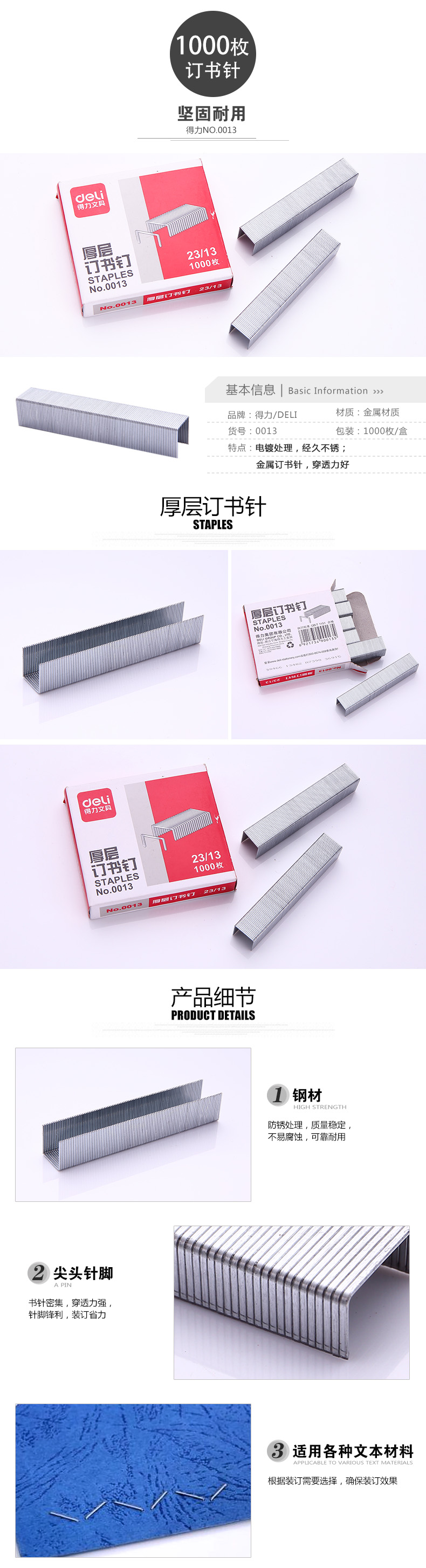 得力厚層訂書釘 可訂100張23/13加厚重型大號訂書針定書針0013 得力0013訂書針