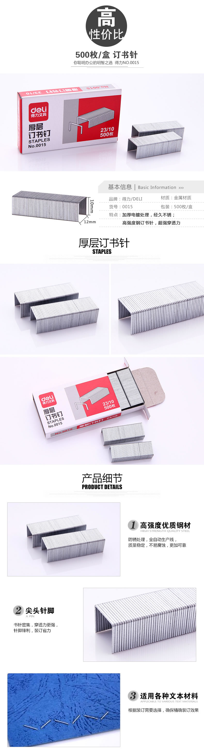 得力重型厚層金屬訂書針23/10 0015型(可訂60頁)訂書釘 得力0015訂書針 0028