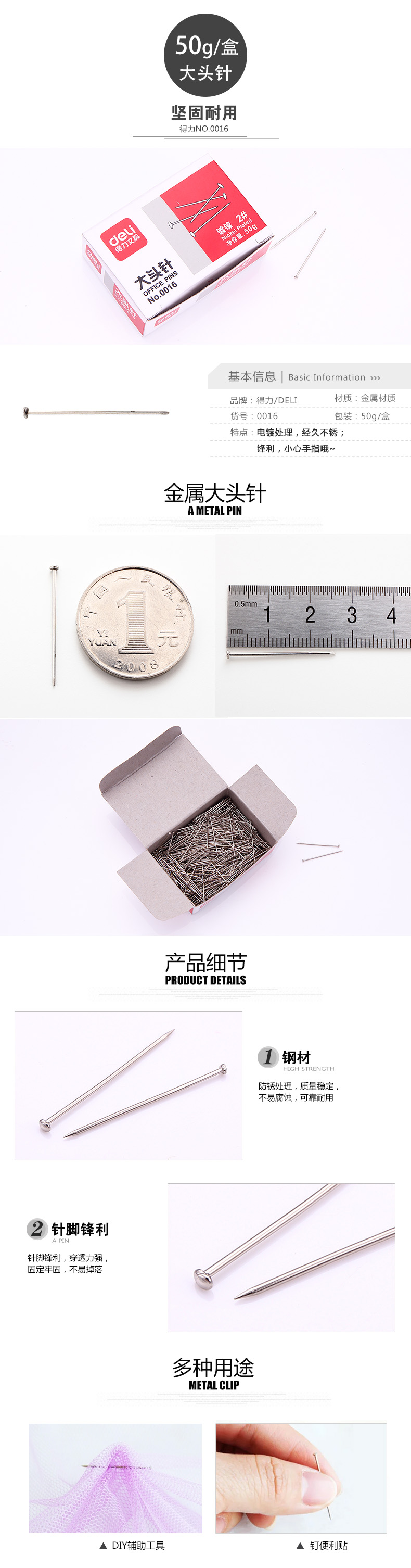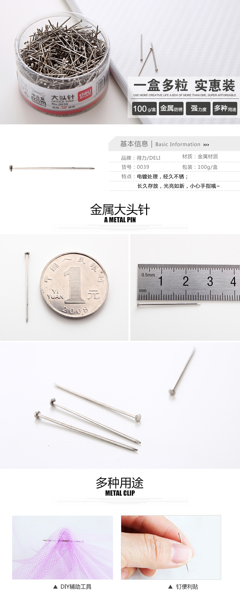 得力 0016 0039 大頭針 24mm盒裝 鍍鎳大頭針 大頭釘 得力大頭針 大頭針