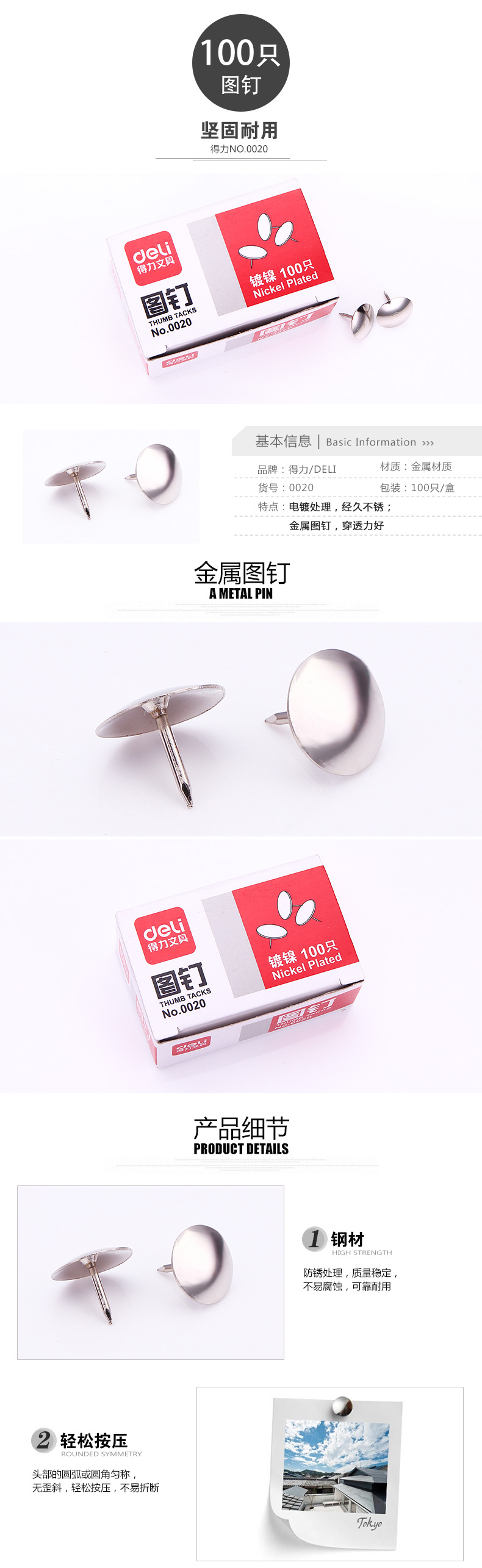 得力圖釘 0020