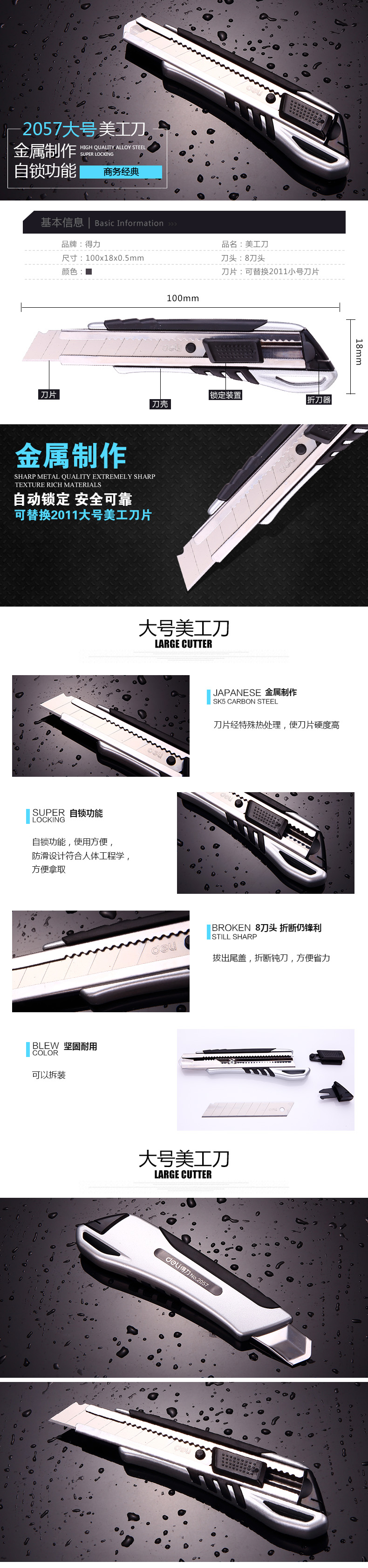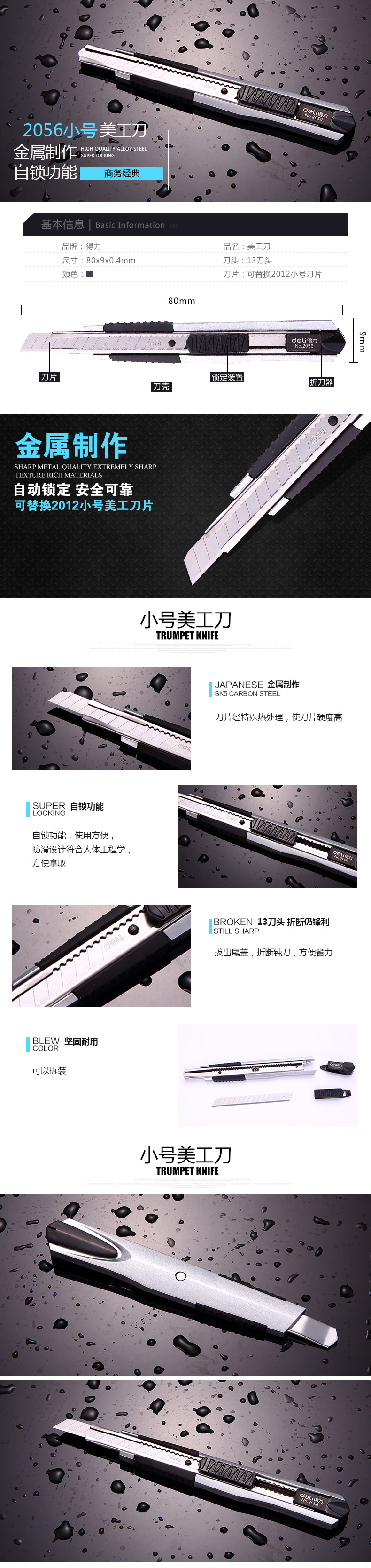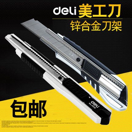 得力2056/2057鋅合金小美工刀不銹鋼美工刀墻壁紙刀金屬刀架刀具