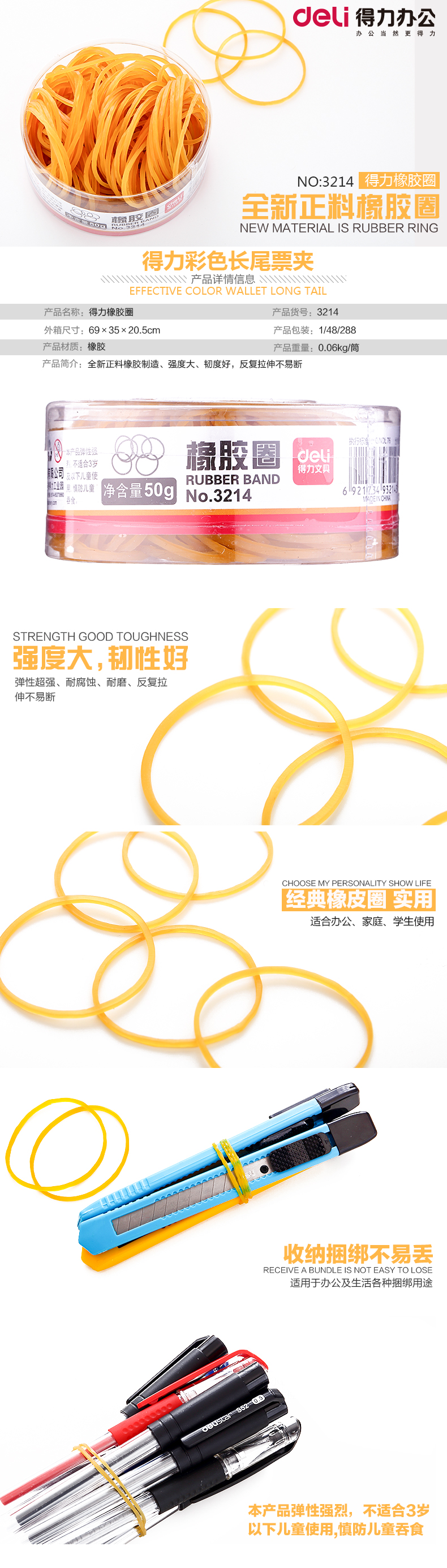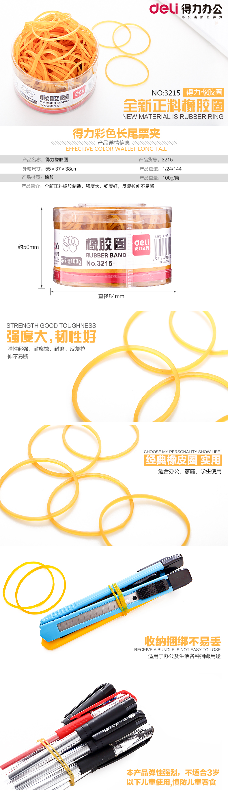得力3214/3215 乳膠圈橡皮筋 辦公財務用 強韌性牢固 長久耐用1筒裝