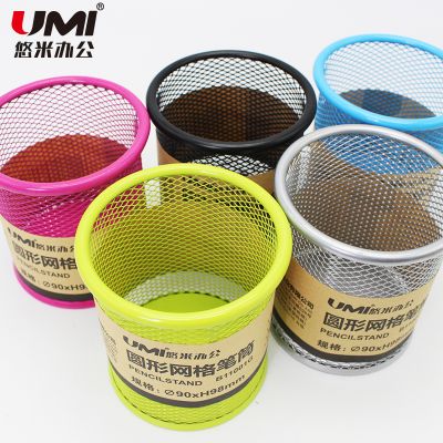 筆筒 黑色圓型網(wǎng)格金屬筆筒韓國創(chuàng)意時(shí)尚桌面辦公用品收納盒 彩色金屬網(wǎng)格筆筒