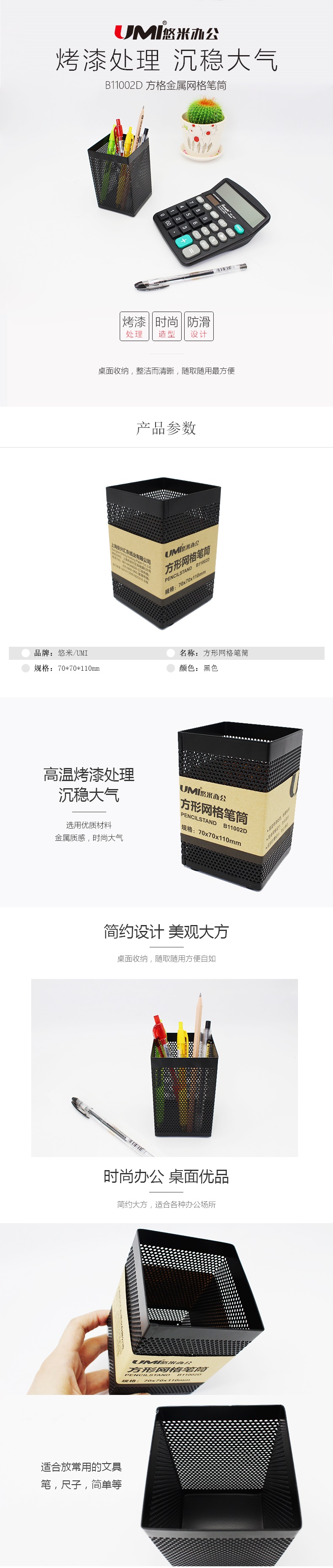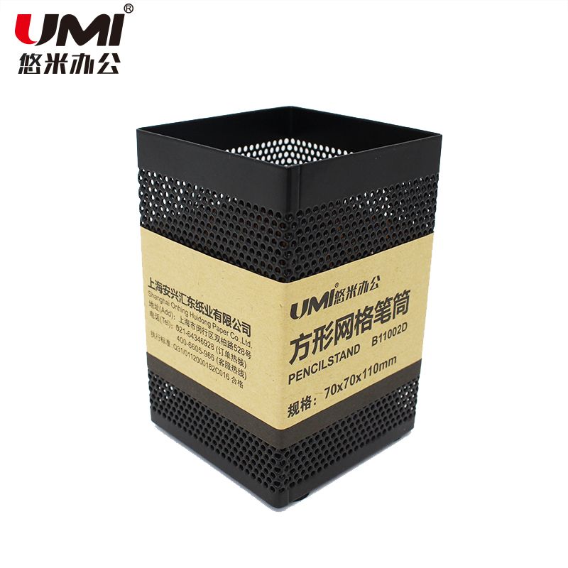 悠米 方形金屬網(wǎng)格筆筒 B11002D 黑 鐵網(wǎng)筆筒 筆筒