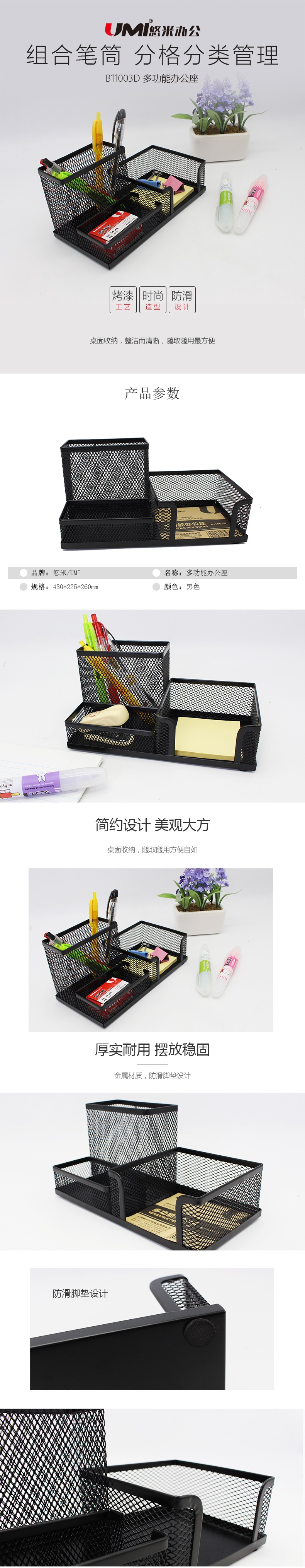悠米 金屬網(wǎng)格多功能辦公座 B11003D 黑 多功能筆筒 組合筆筒 鐵網(wǎng)筆筒