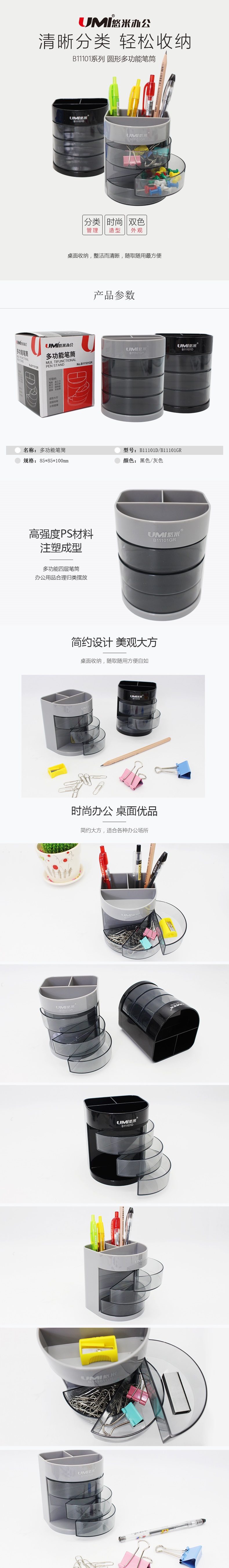 悠米 圓形塑料筆筒 B11101D 黑 多功能筆筒 塑料筆筒 組合筆筒