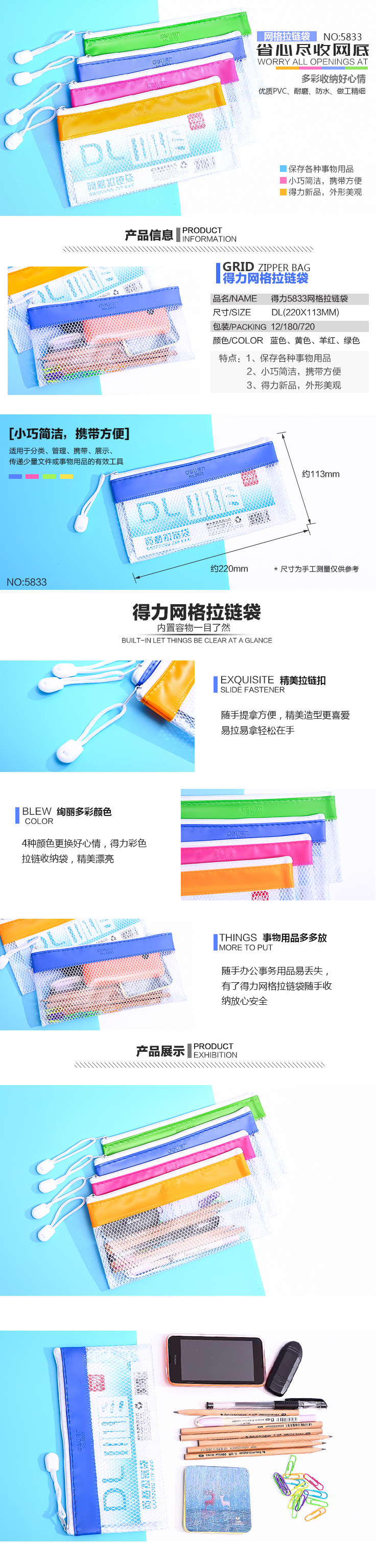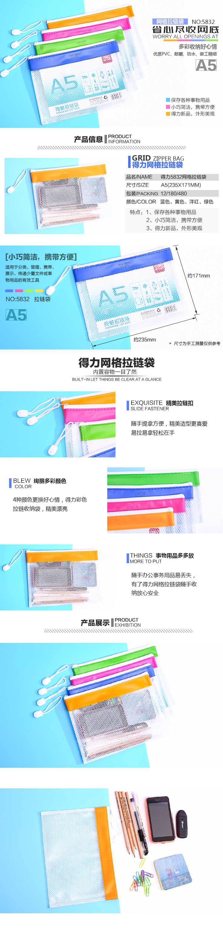 得力辦公用品網(wǎng)格拉鏈袋A5.5/A5/B5/A4學(xué)生文具文件袋文具袋子收納袋/文件袋/網(wǎng)格袋/票據(jù)袋 5830 5831 5382 5383