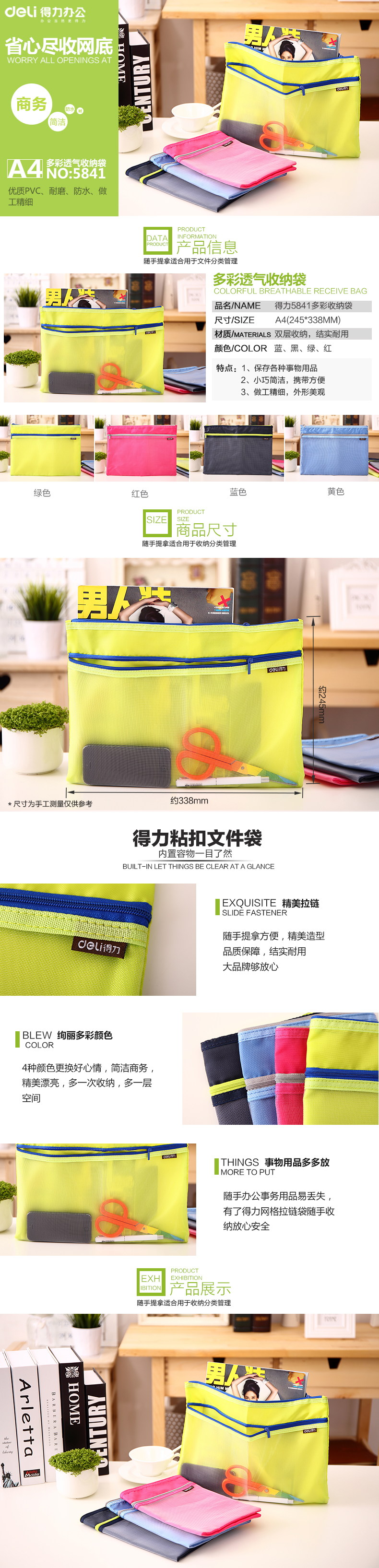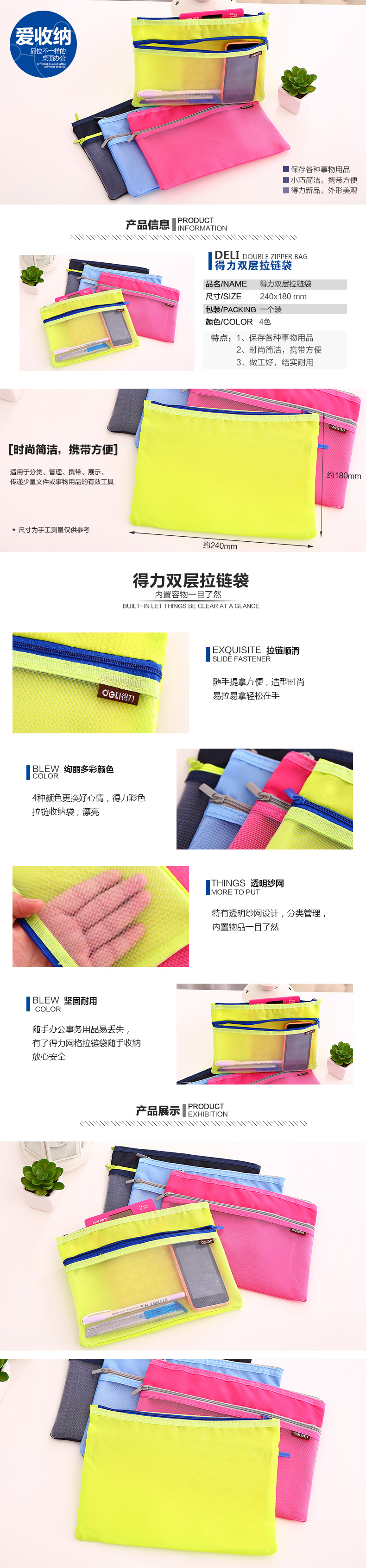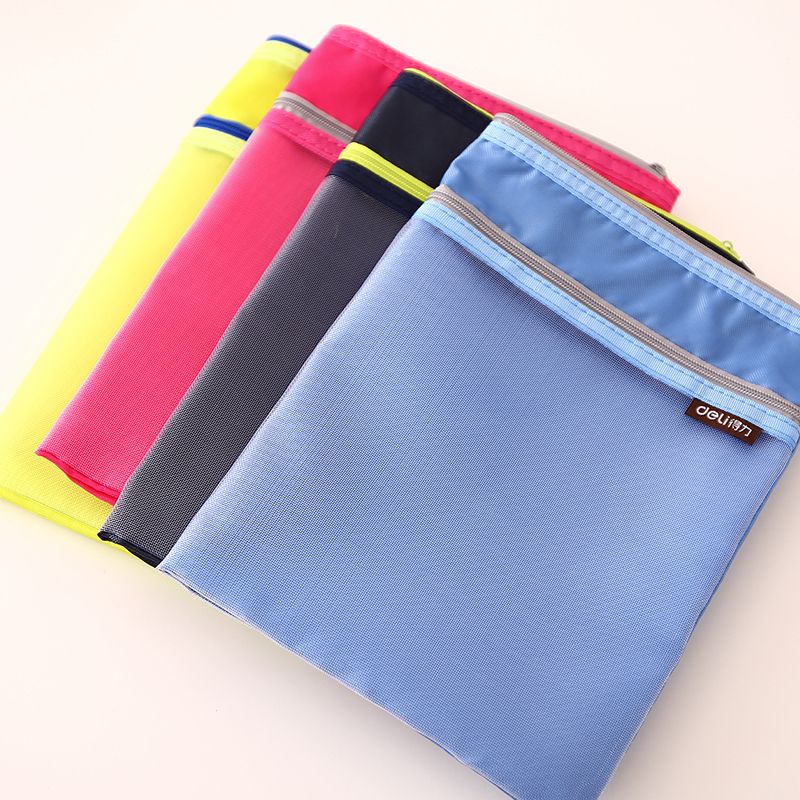 deli得力5841/5842/5843 柔質(zhì)拉鏈袋 A4/B5/A5透氣文件袋 A4雙層拉邊袋 資料袋