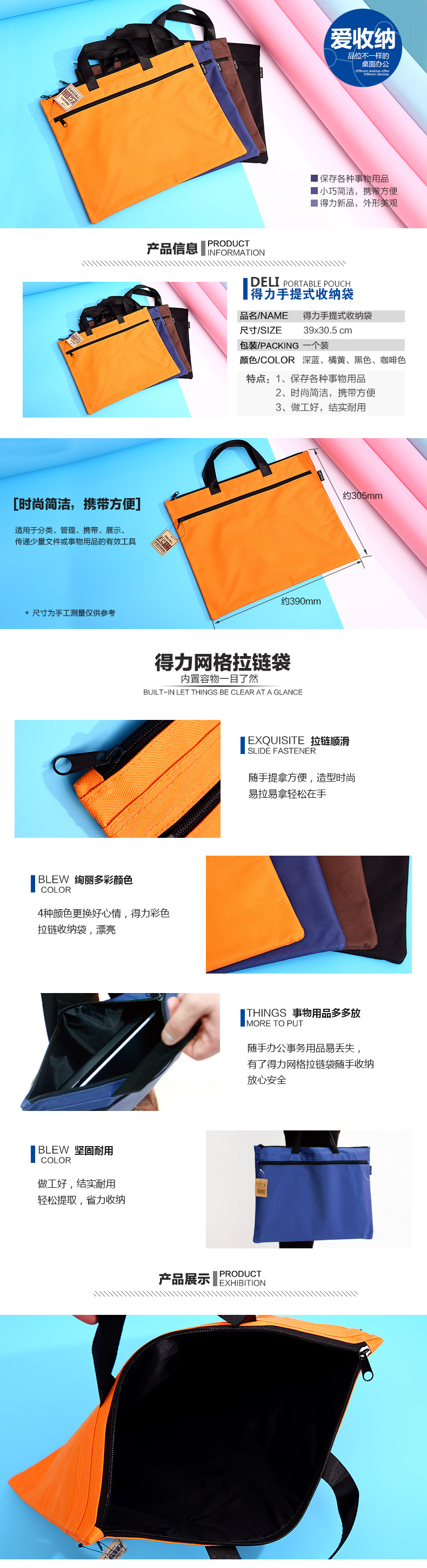得力5840文件袋A4辦公用品拉鏈袋資料袋女士帆布手提包男士公文包