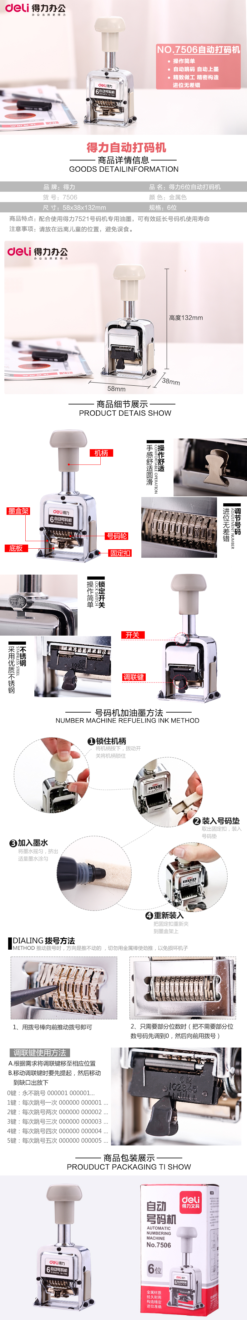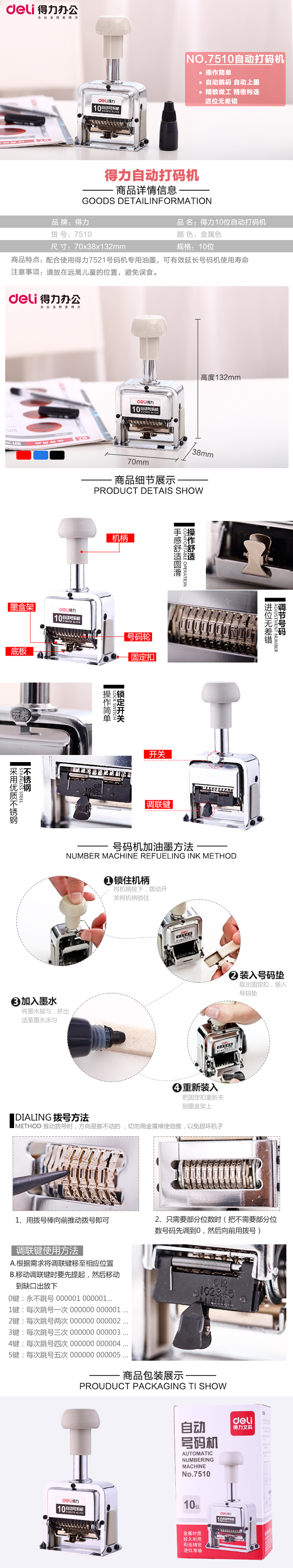 得力7506/7508/7510號(hào)碼機(jī)6位/8位/10位數(shù)字機(jī)自動(dòng)打碼機(jī)號(hào)碼印數(shù)字印日期章頁碼機(jī)