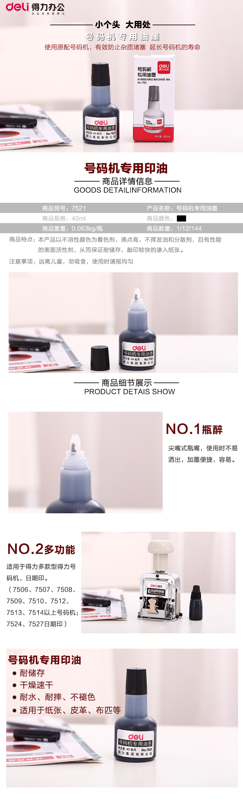 得力號碼機用油7521打碼機數字號碼機日期印黑色40ml/瓶