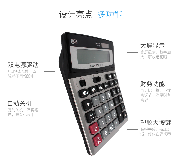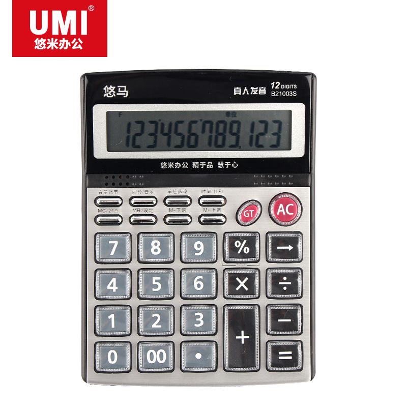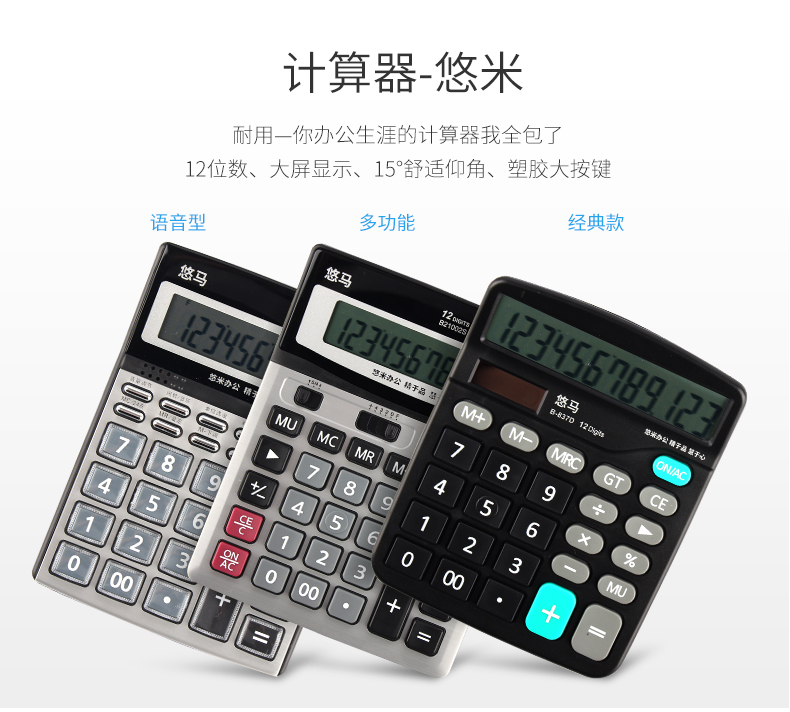 悠米 837計算機大屏語音真人大按鍵財務專用太陽能12位計算器便捷