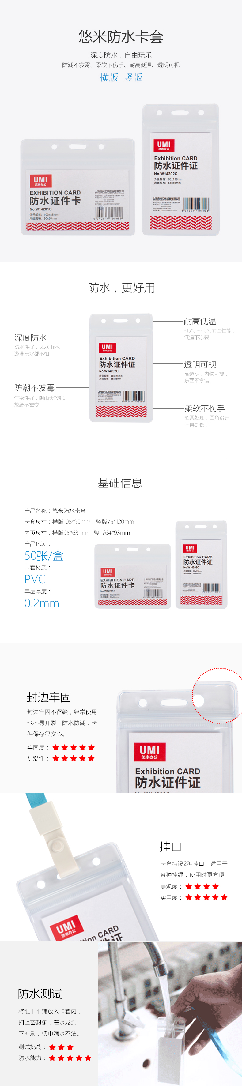 悠米透明防水塑料證件卡套 員工工作牌胸卡保護套 吊牌工作卡胸牌