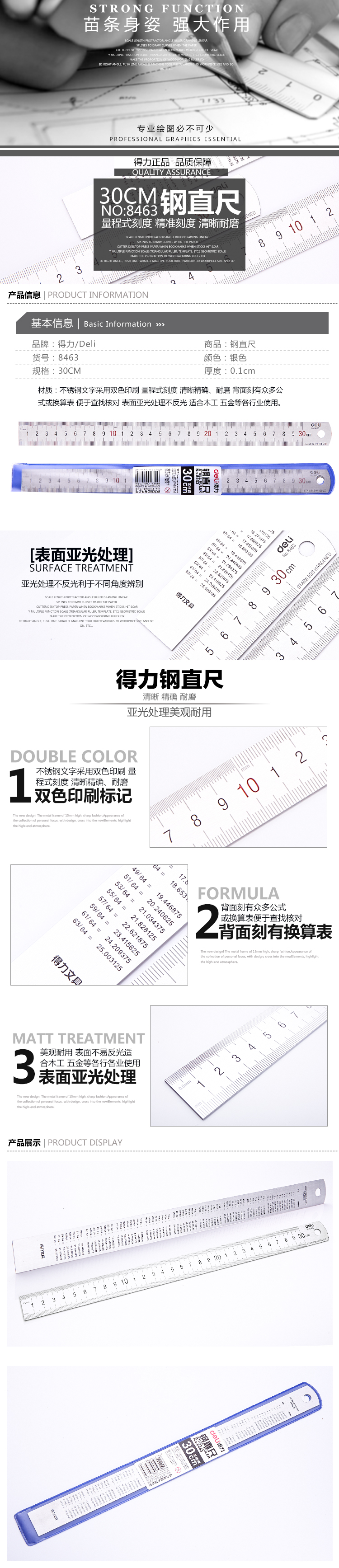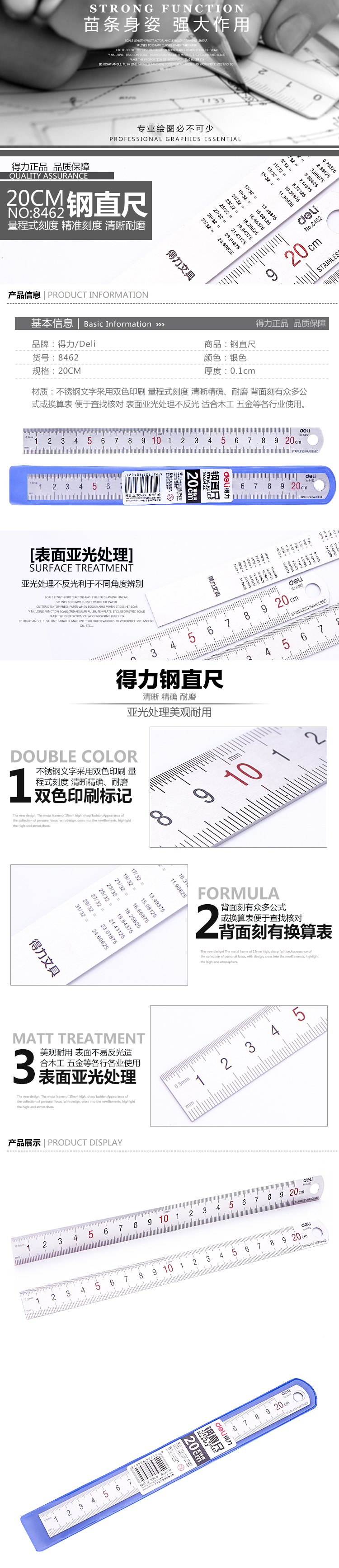 20cm鋼尺/30cm鋼尺/50cm鋼尺學(xué)生用尺子不銹鋼測(cè)量?jī)x器文具用品 8462 8463 8464 得力鋼尺