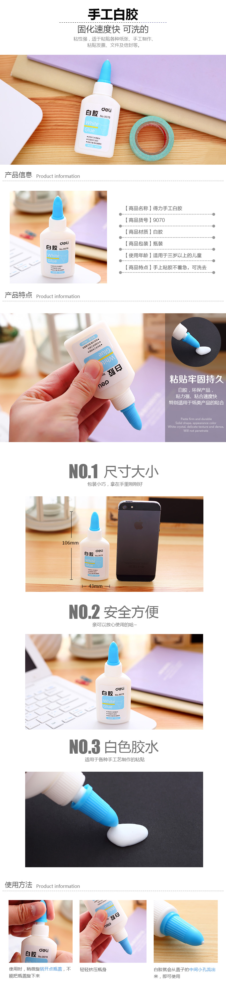 得力(deli)9070乳白膠學生手工課專用膠水可手洗40ml/瓶