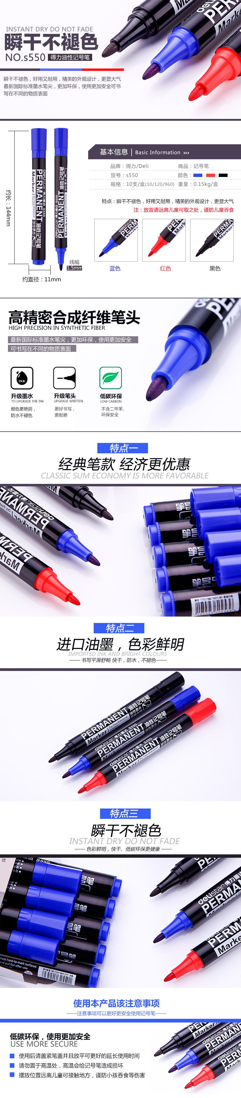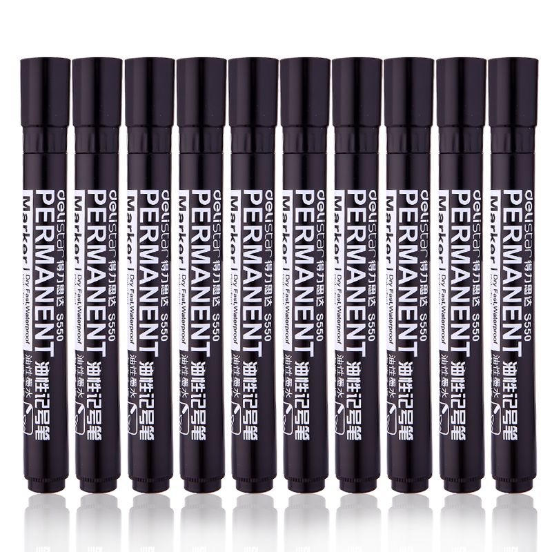 得力(deli) 記號(hào)筆S550 單頭油性筆 箱頭筆 物流筆大頭筆 10支裝 6881黑色