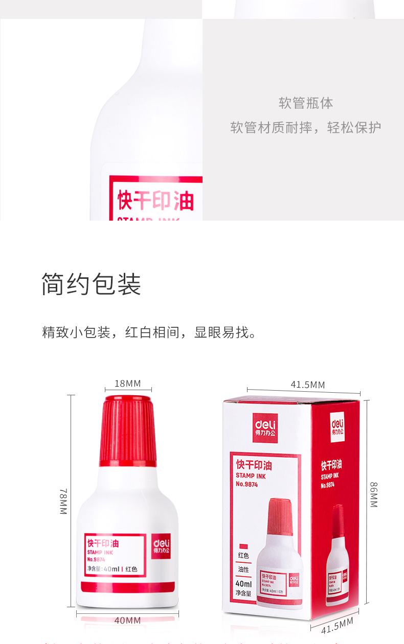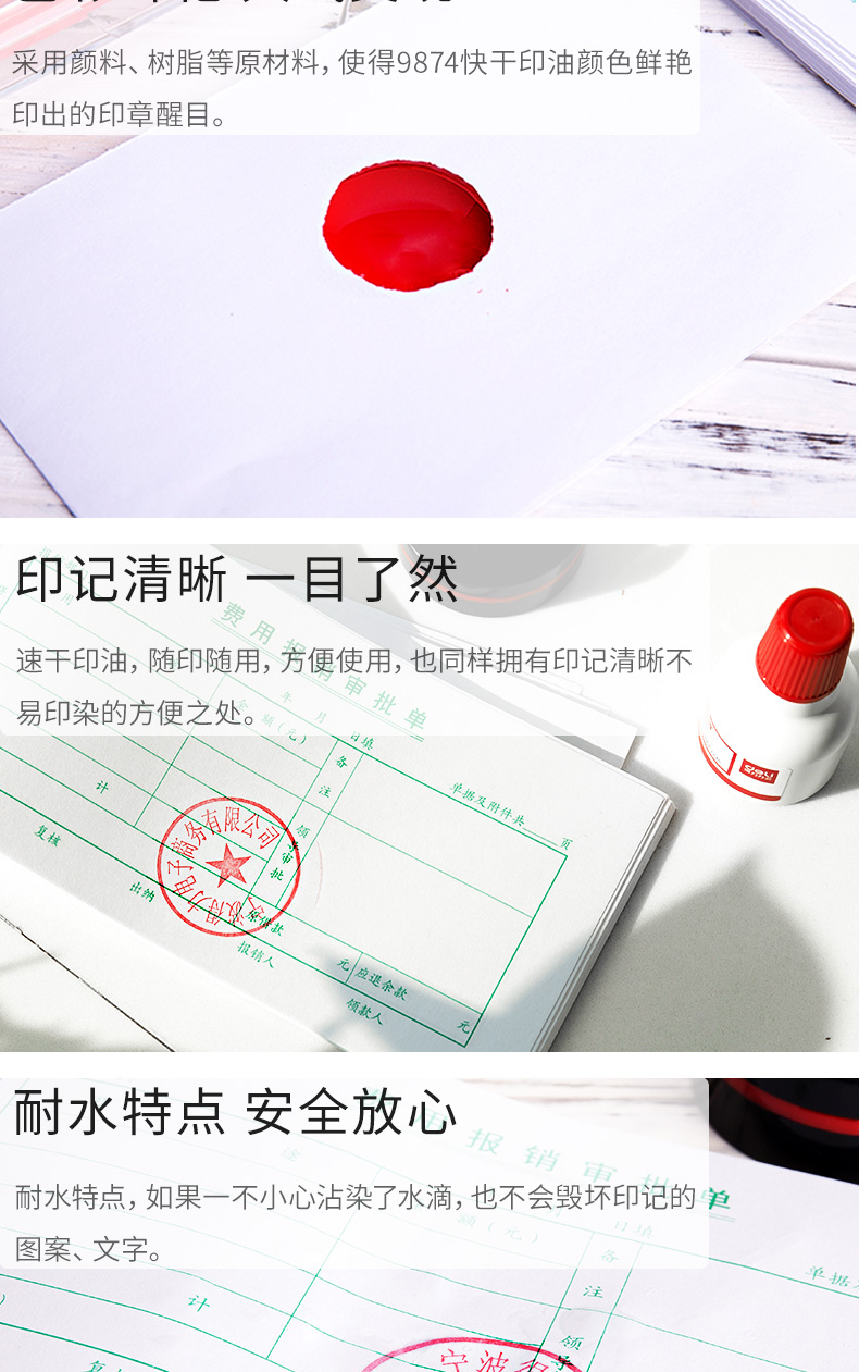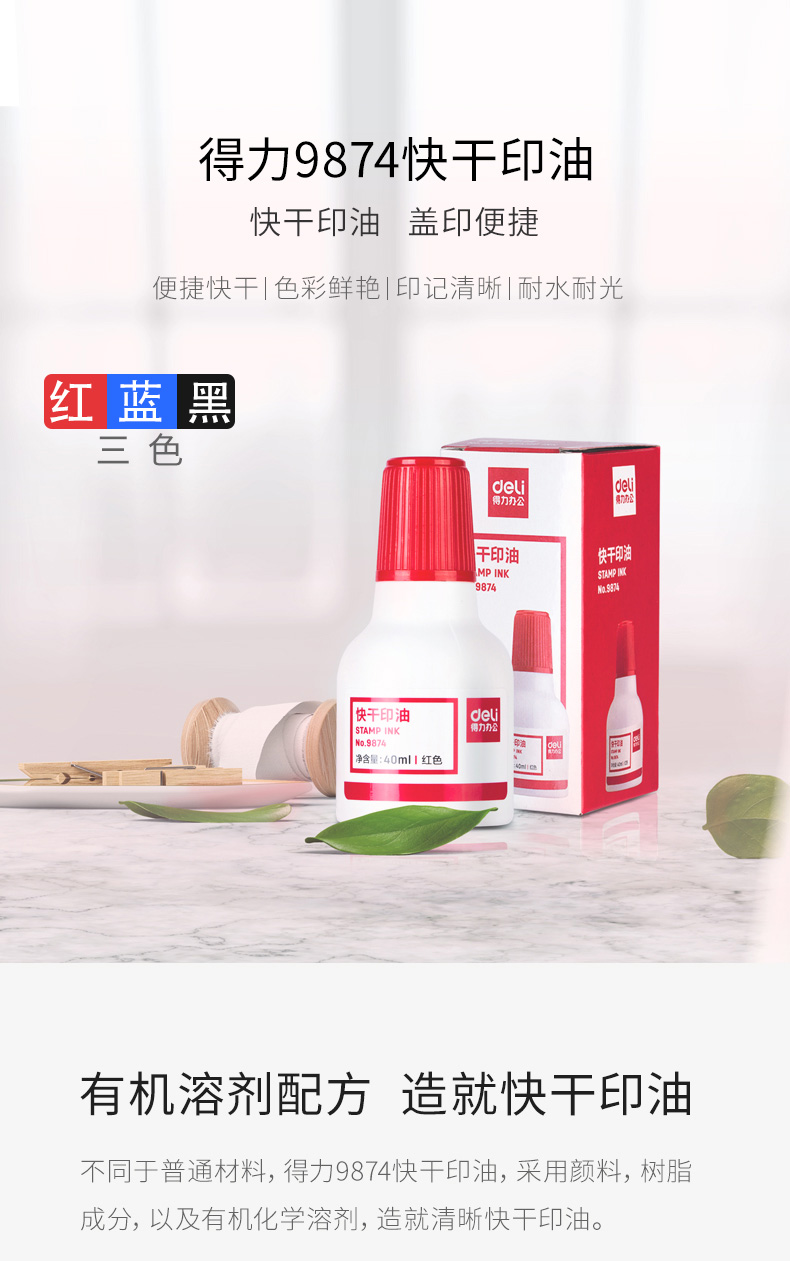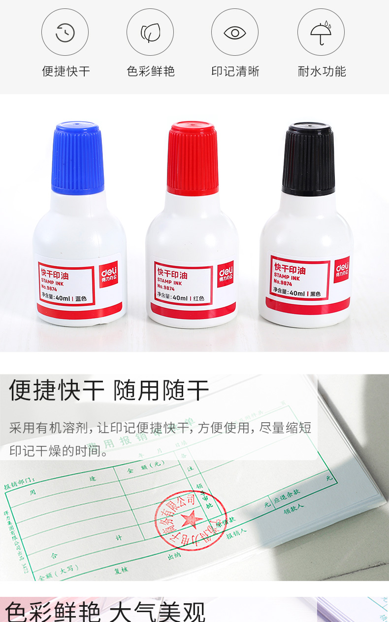 得力(deli)40ml財務印章快干清潔印油印泥 紅色9874 紅色印油 藍色印油 黑色印油