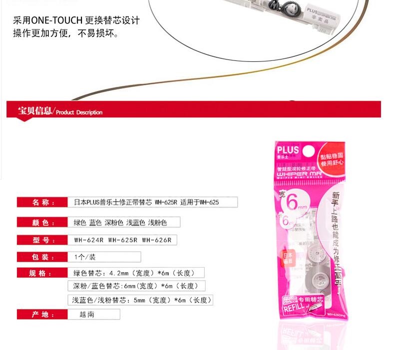 普樂士(PLUS) 日本修正帶WH-625/626 635 簡易替換環(huán)保新款 可愛糖果色 改錯(cuò)帶 淺藍(lán)色 開學(xué)