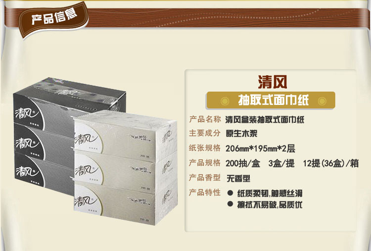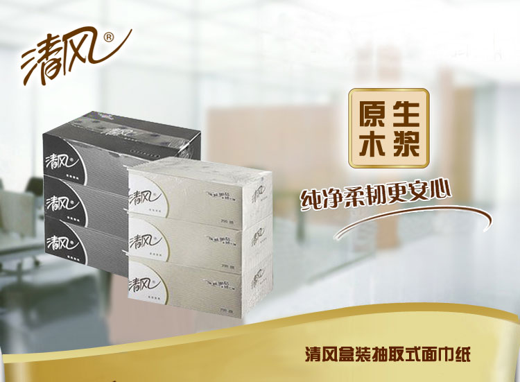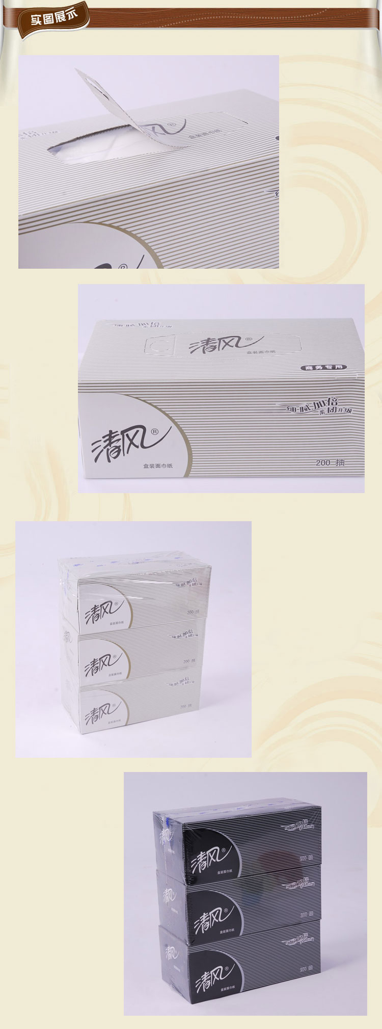 清風盒抽紙巾 盒裝面巾紙商務會議辦公用 盒抽紙巾餐巾紙衛生紙2層200抽 B338A2