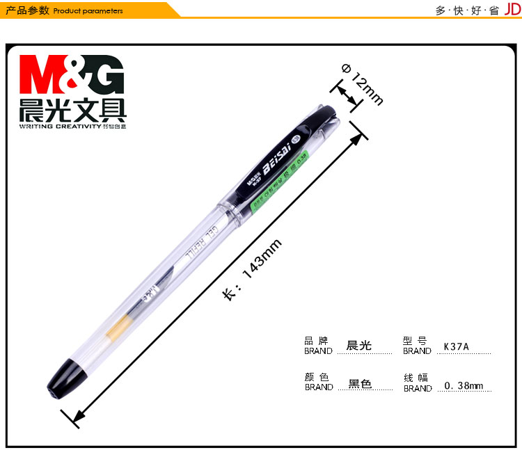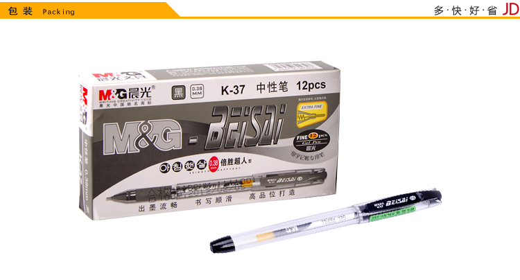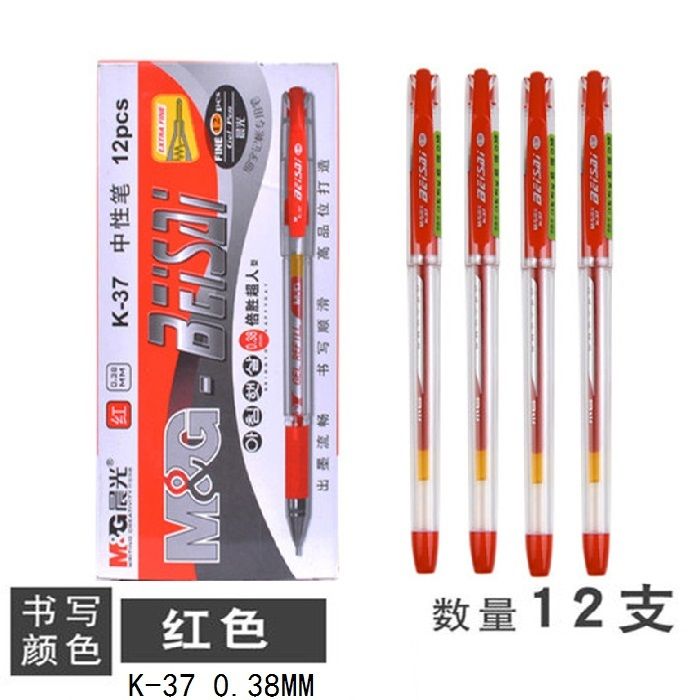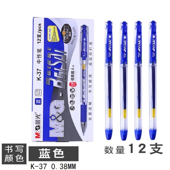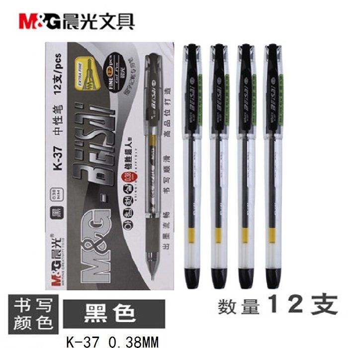晨光(M&G)K37財務葫蘆頭中性筆簽字筆水筆0.38mm12支裝 黑色 0.38黑色水筆 開學