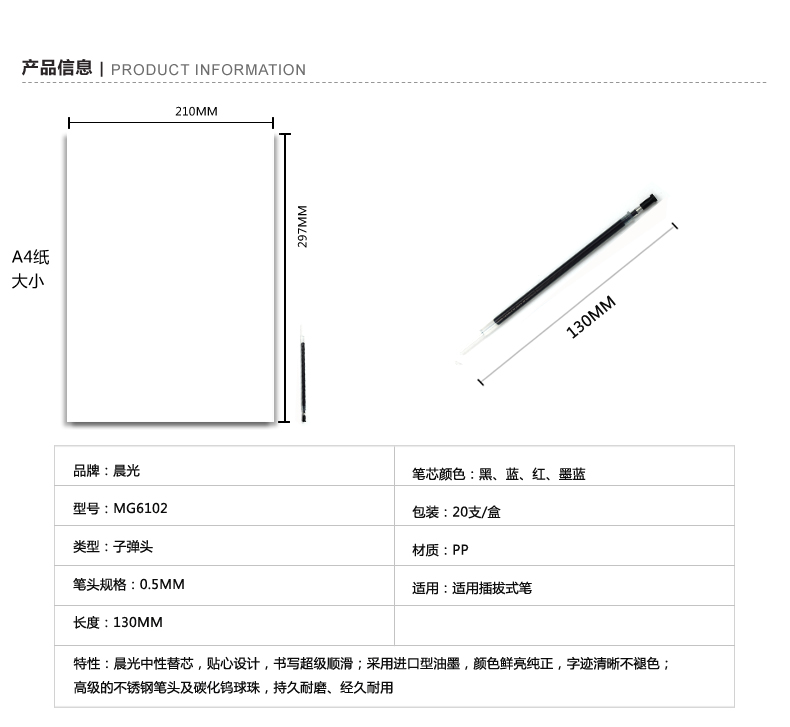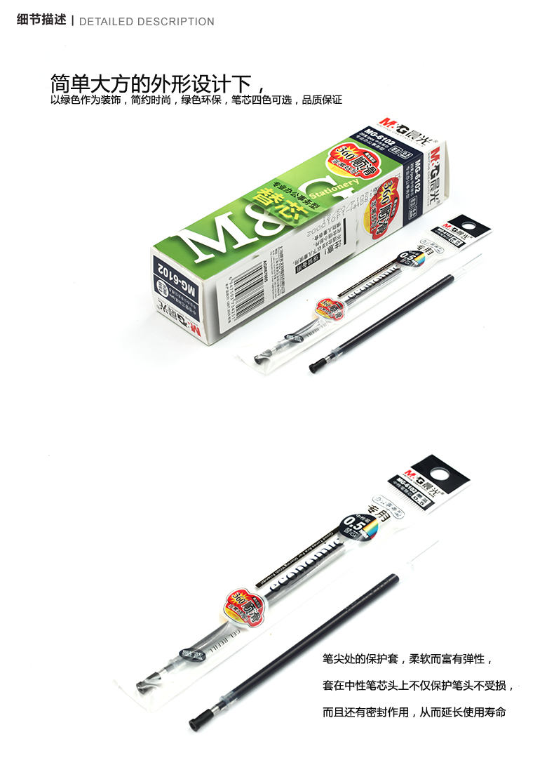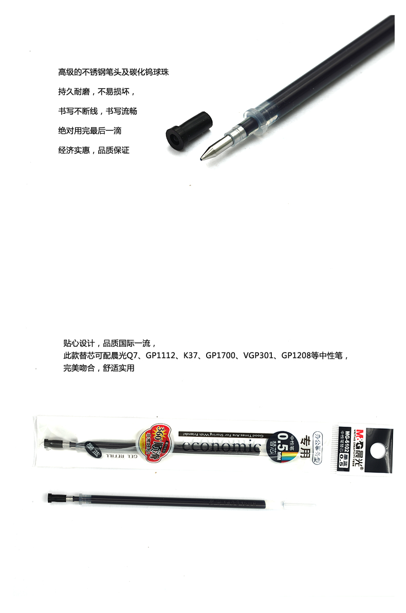 晨光MG-6102子彈頭Q7中性筆筆芯0.5mm紅藍黑色 水筆替芯 水筆芯 開學