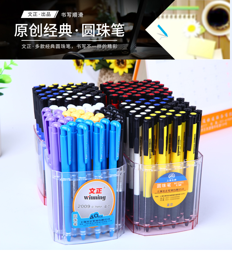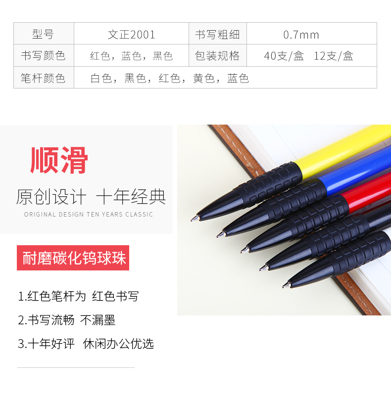 按動圓珠筆WZ-2001文正2001圓珠筆0.7mm辦公文具學生文具 2001藍色 藍色圓珠筆 黑色圓珠筆