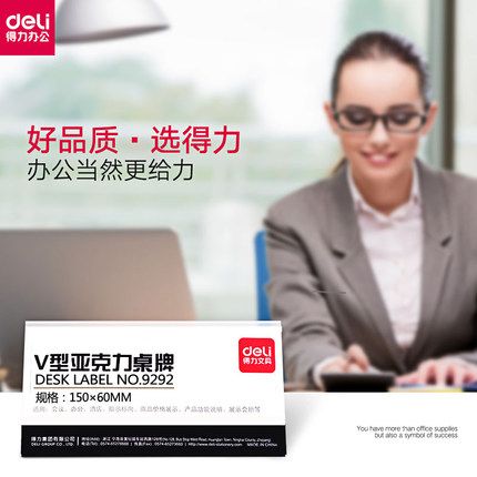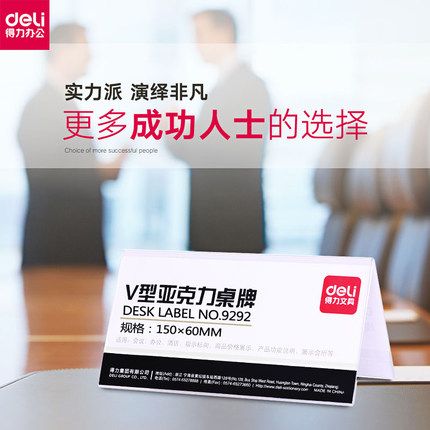 得力9292桌牌 150*60mm V型雙面臺牌標價牌臺卡桌卡座位卡會議牌 三角臺卡