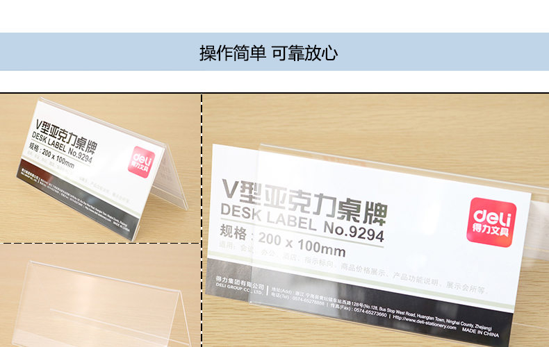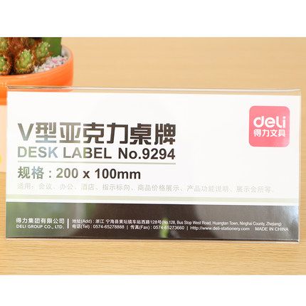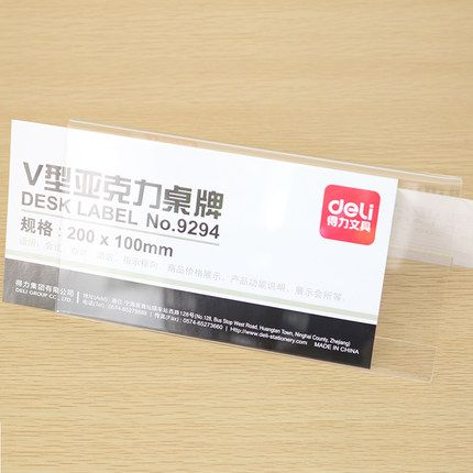 得力9294100*200mm V型桌牌臺卡架亞克力會議牌桌面展示牌評委牌名字牌席卡 三角臺卡