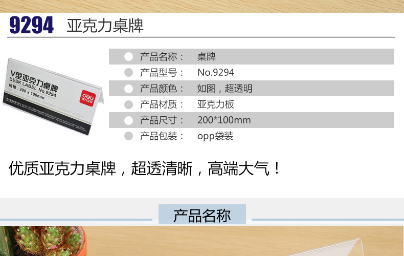 得力9294桌牌 200*100mm