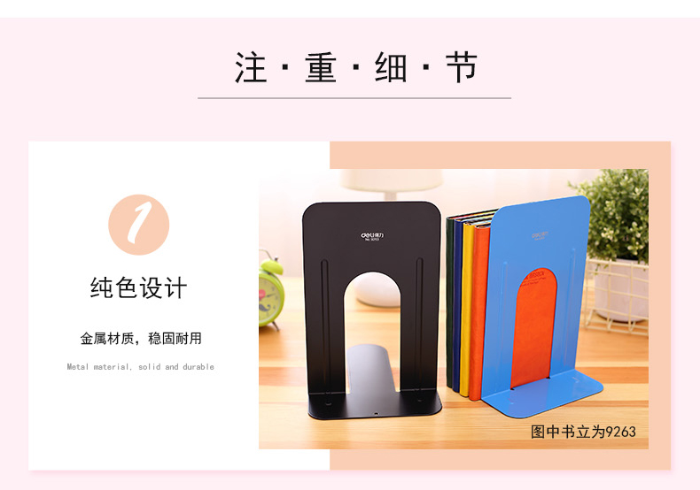 得力9263書立鐵書架 9寸書夾書檔書靠檔書板學生支書架放書架23mm
