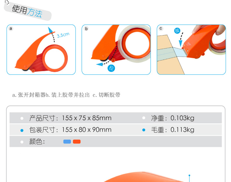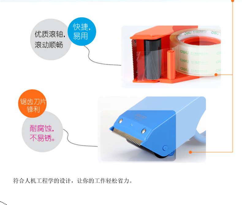 得力802封箱器透明膠帶切割器6cm膠帶機打包機大號手動塑料分割器