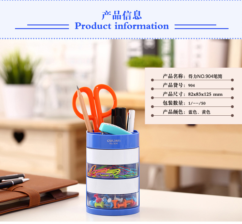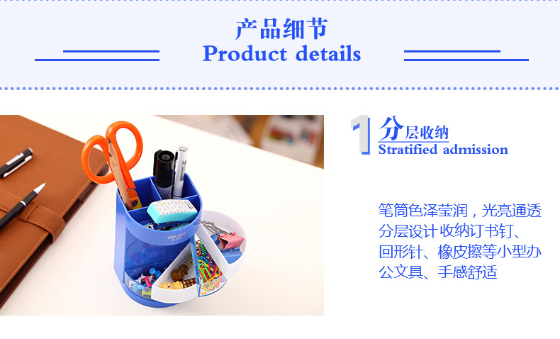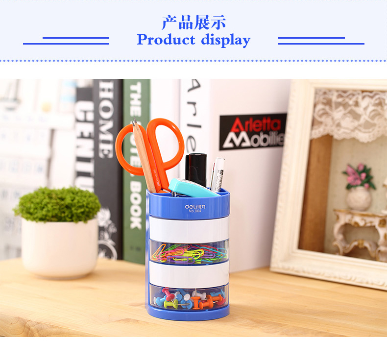 得力904創意時尚多功能筆筒 圓形筆筒桌面筆桶收納盒4層收納筆座