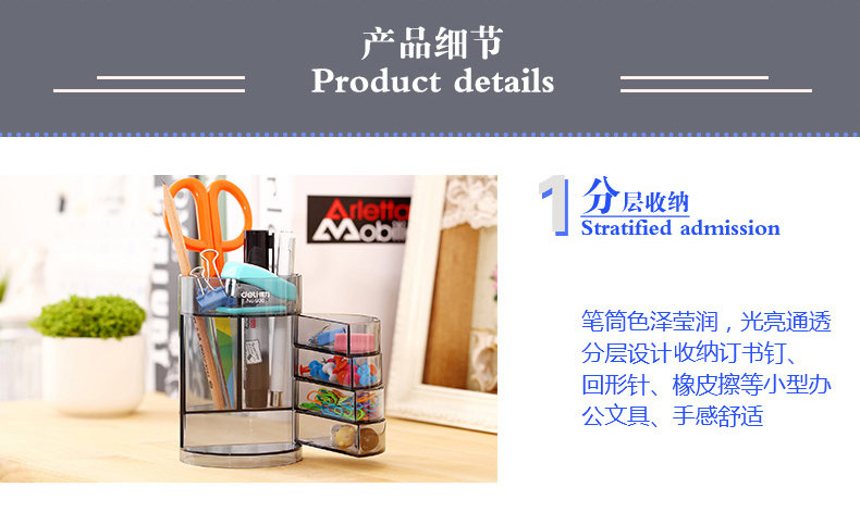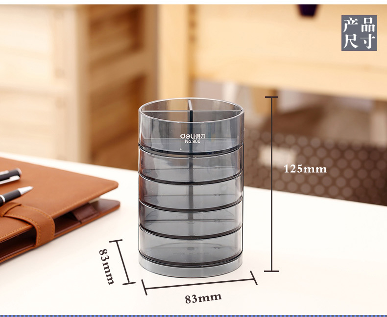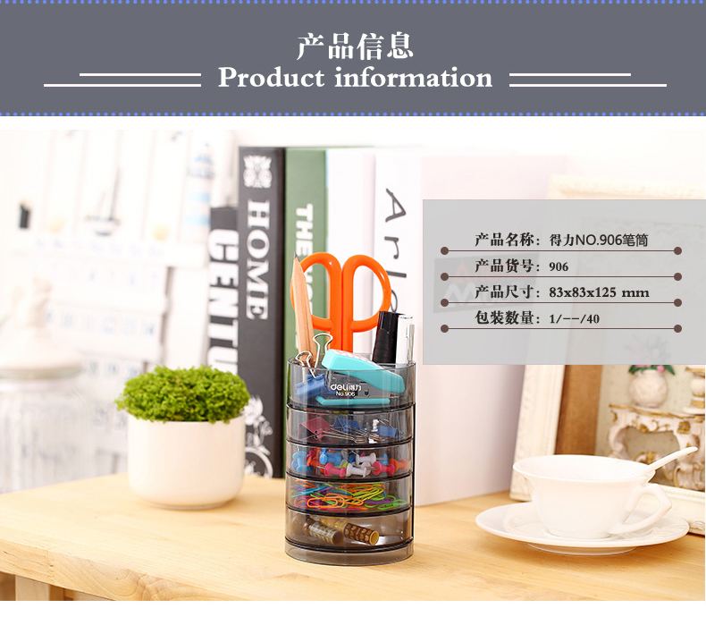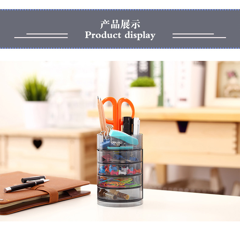 得力906五層筆筒時(shí)尚透明塑料學(xué)生多功能收納盒筆座文具辦公用品