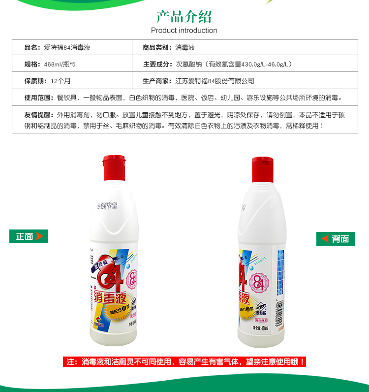 愛特福84消毒液468ml漂白家用除霉殺菌